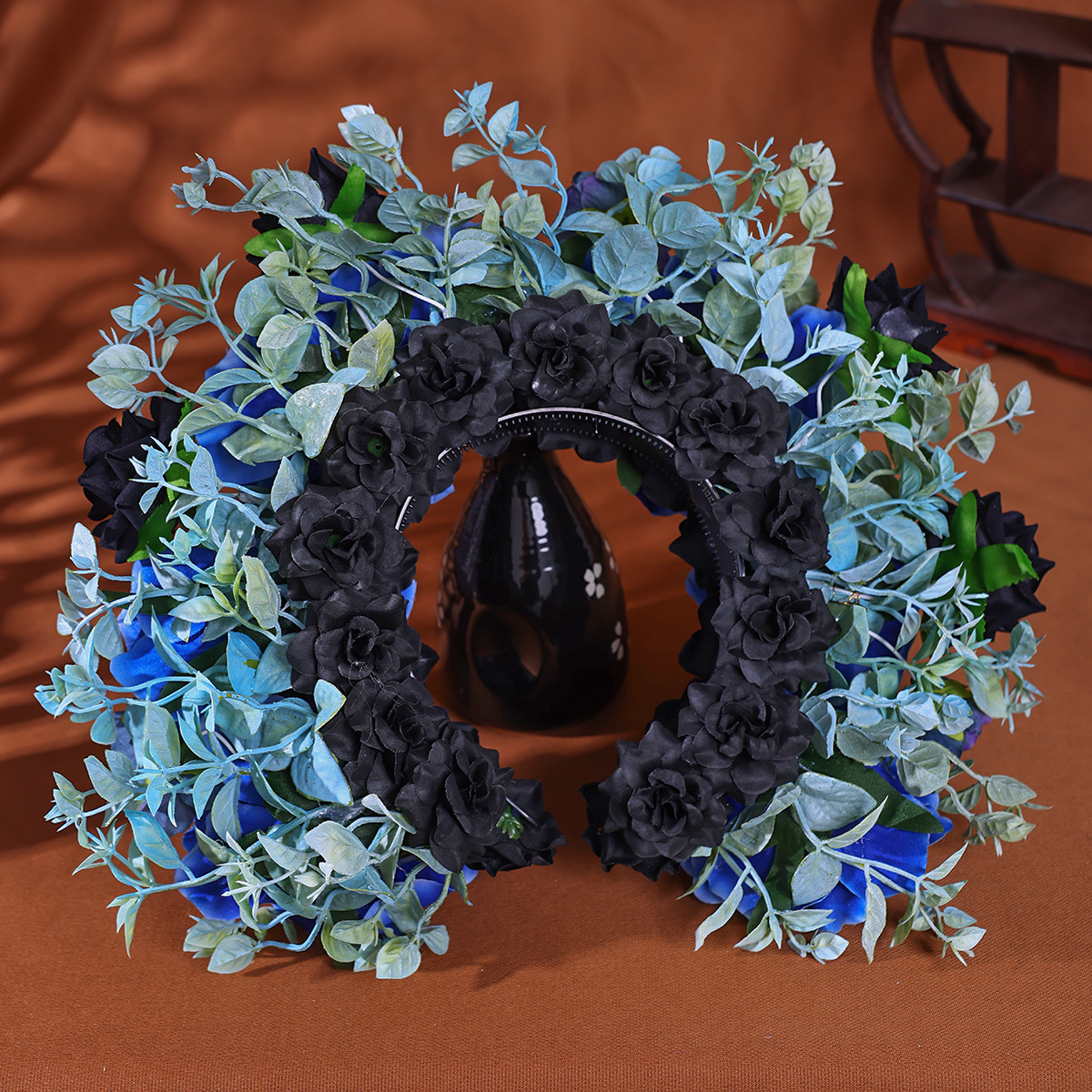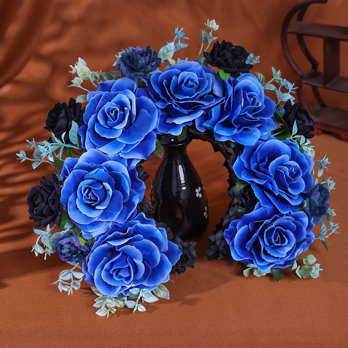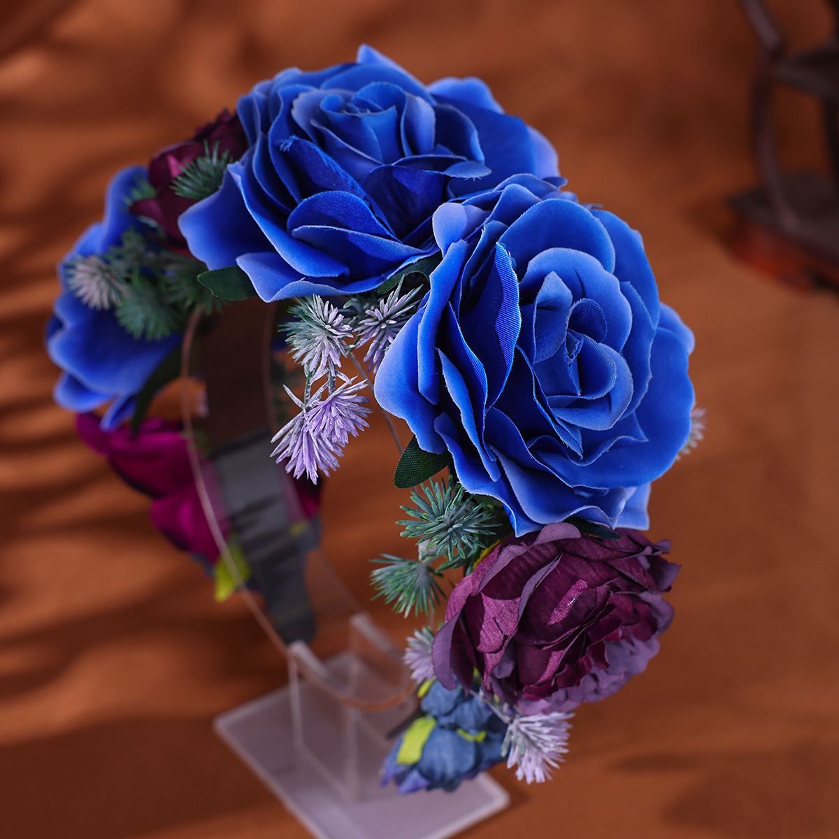 小众高颜值爆款发箍头饰写 真拍照冷艳女王蓝色妖姬簪花