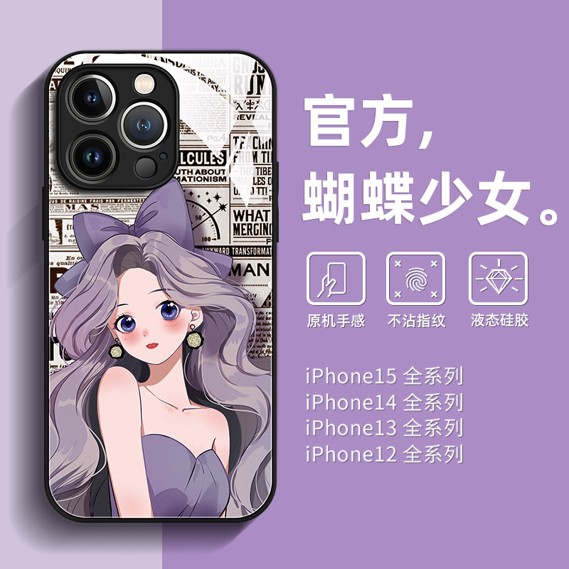 适用于苹果15手机壳新款15promax时尚女孩iphone14pro镜面玻璃13/