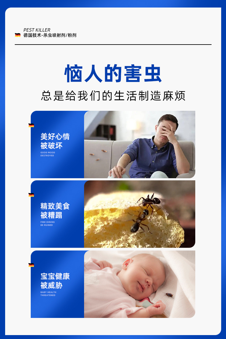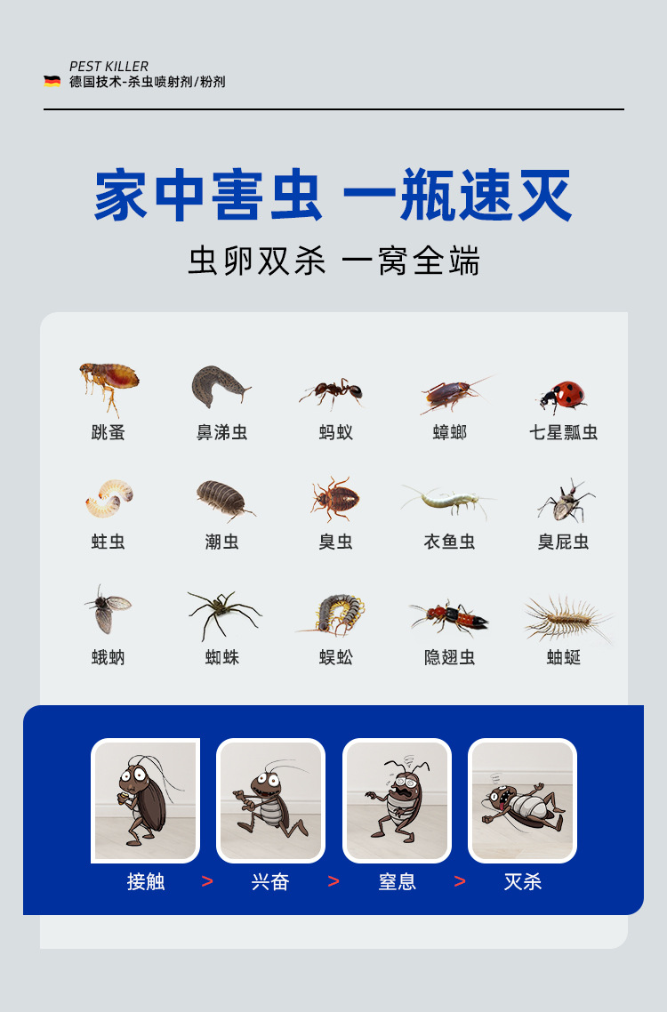 苍蝇虫卵臭虫蟑螂跳蚤蚂蚁药杀虫剂户外驱虫家用厨房卫生间卧室客厅