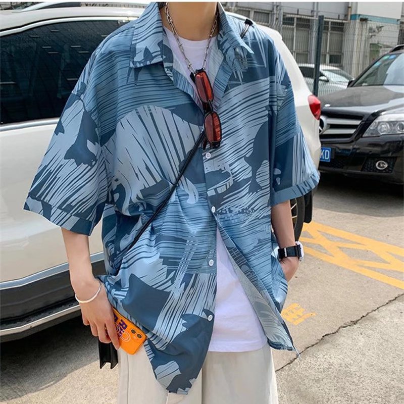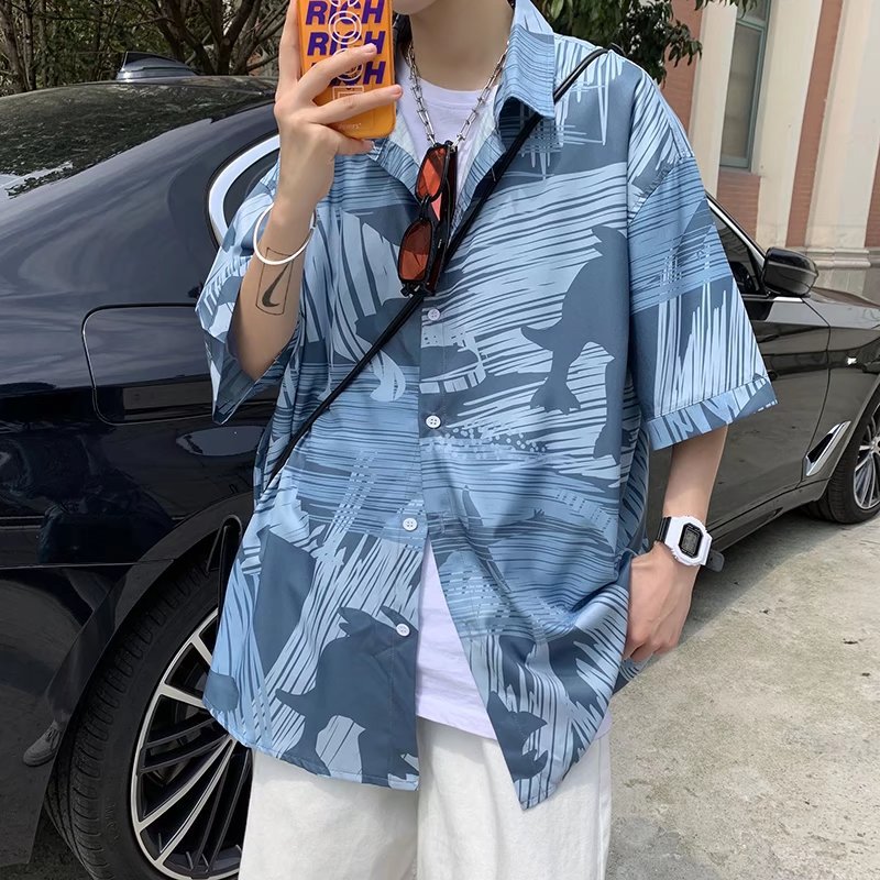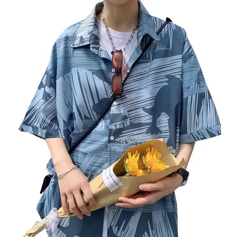 复古花衬衫男短袖夏季薄款港风日系潮流外套男帅气设计感小众衬衣