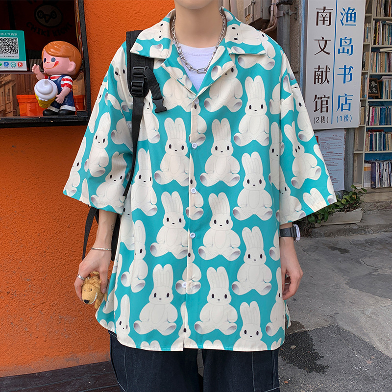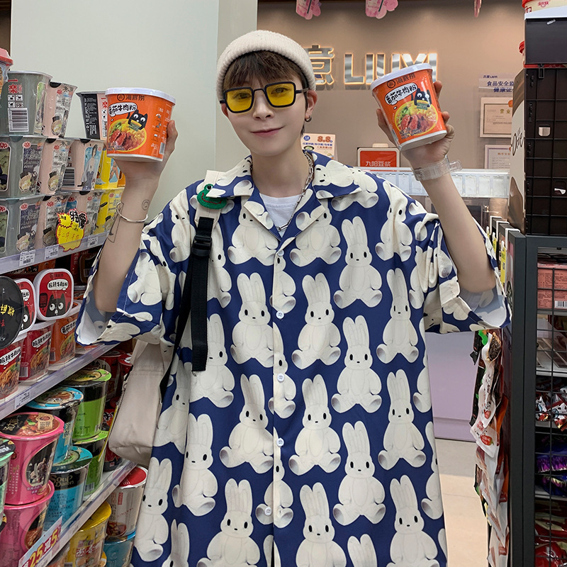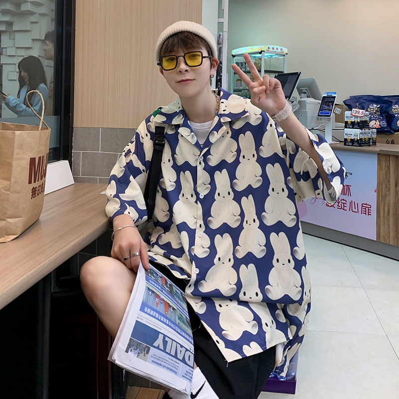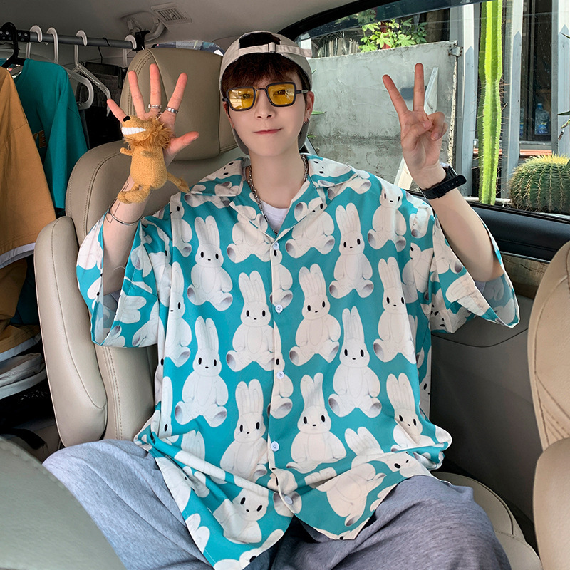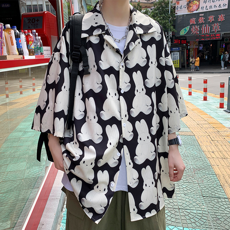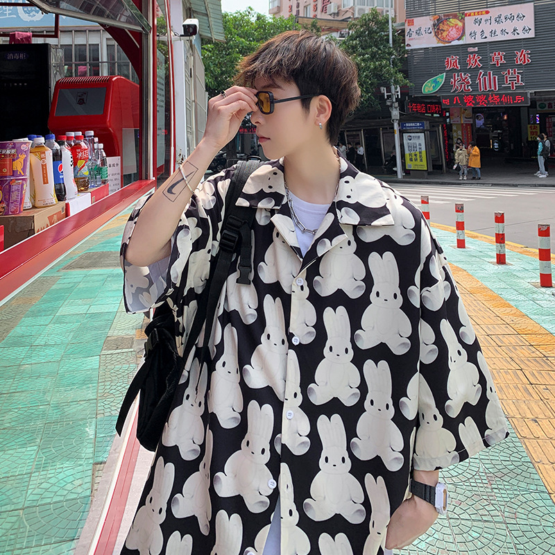 满印花衬衫男生设计感小众短袖衬衣港风日系夏季薄款痞帅外套上衣