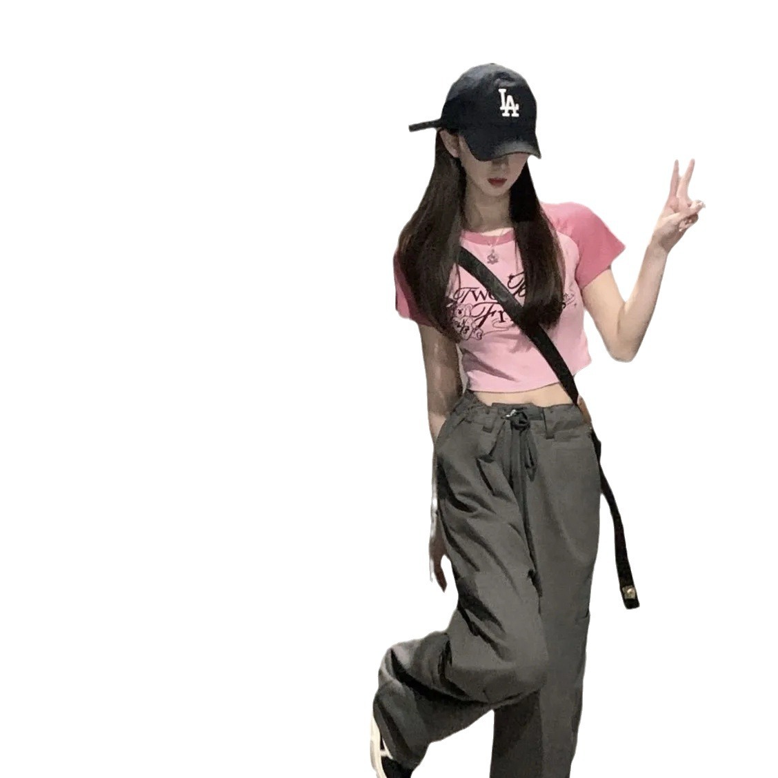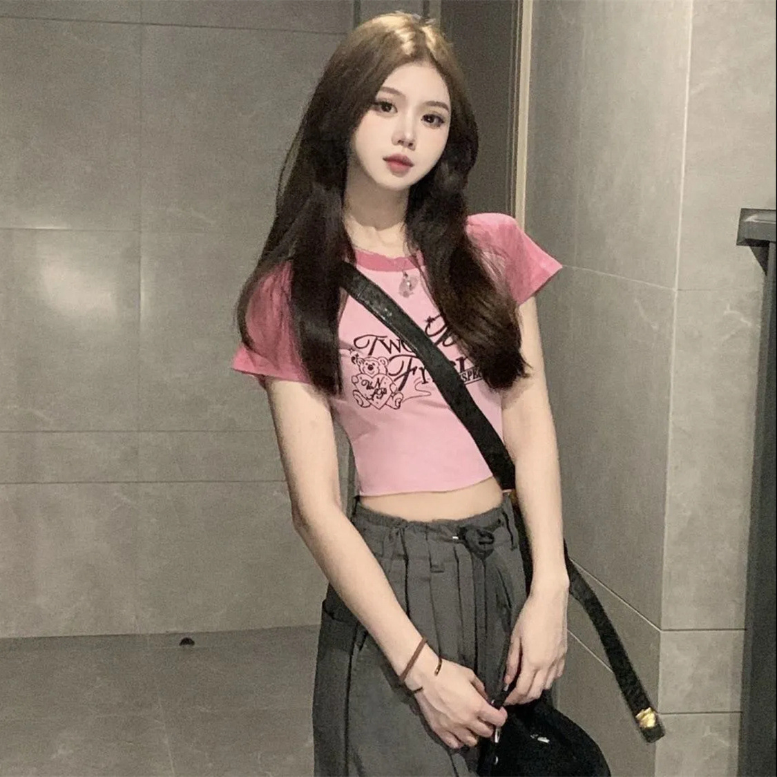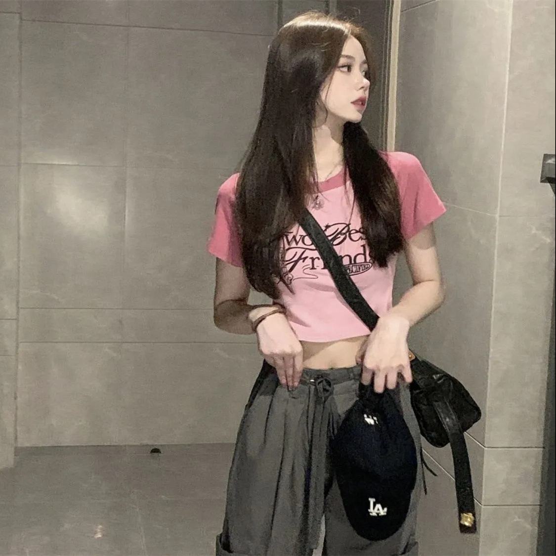 美式辣妹紧身短款T恤女夏季新款矮小个子撞色甜辣风短袖上衣欧货