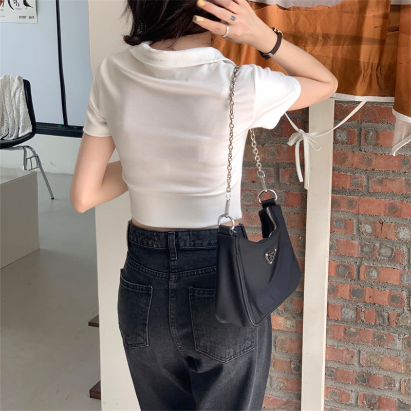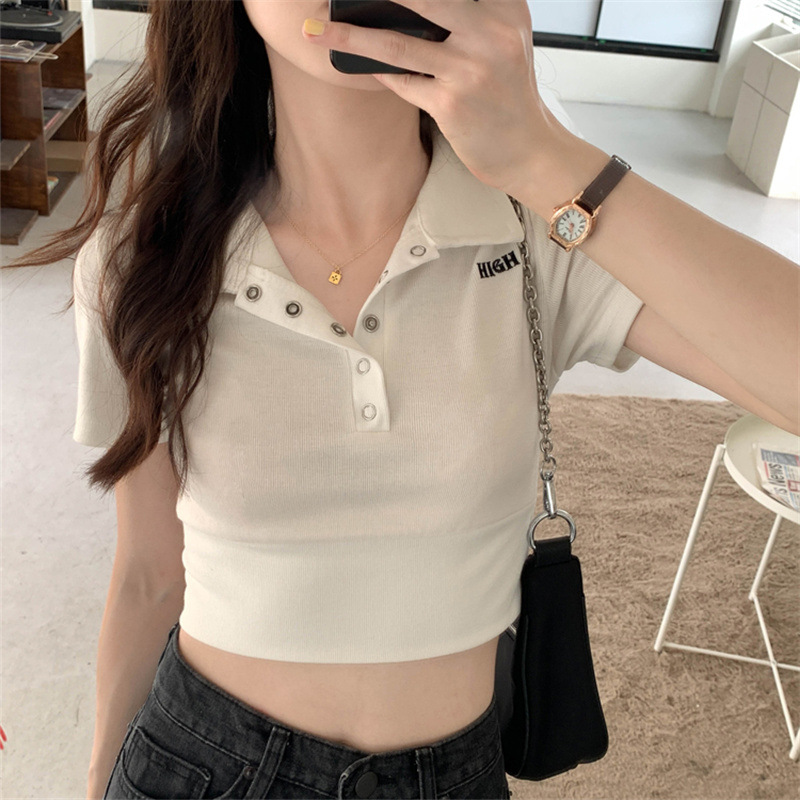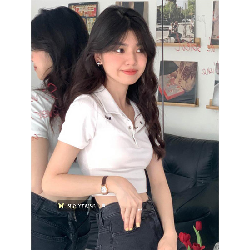 纯欲风辣妹polo领短袖T恤女夏季设计感小众修身显瘦露脐短款上衣