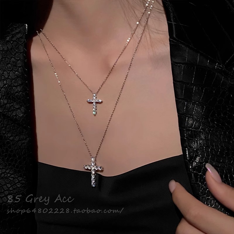 新款镶钻十字架钛钢毛衣项链女轻奢卫衣链高级感锁骨链配饰