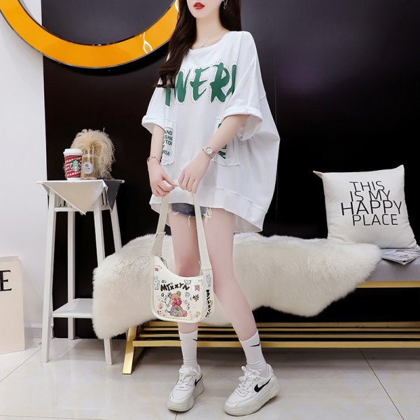克莱因蓝t恤中长款大码女装夏季宽松后背设计感别致不规则上衣