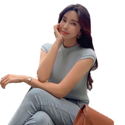 无袖T恤上衣女气质2025春夏新款洋气修身半高领弹力打底背心潮