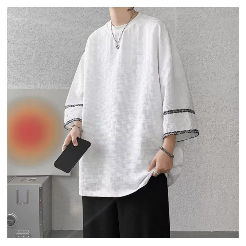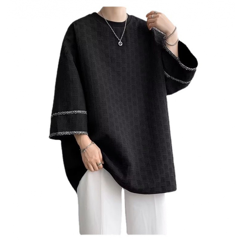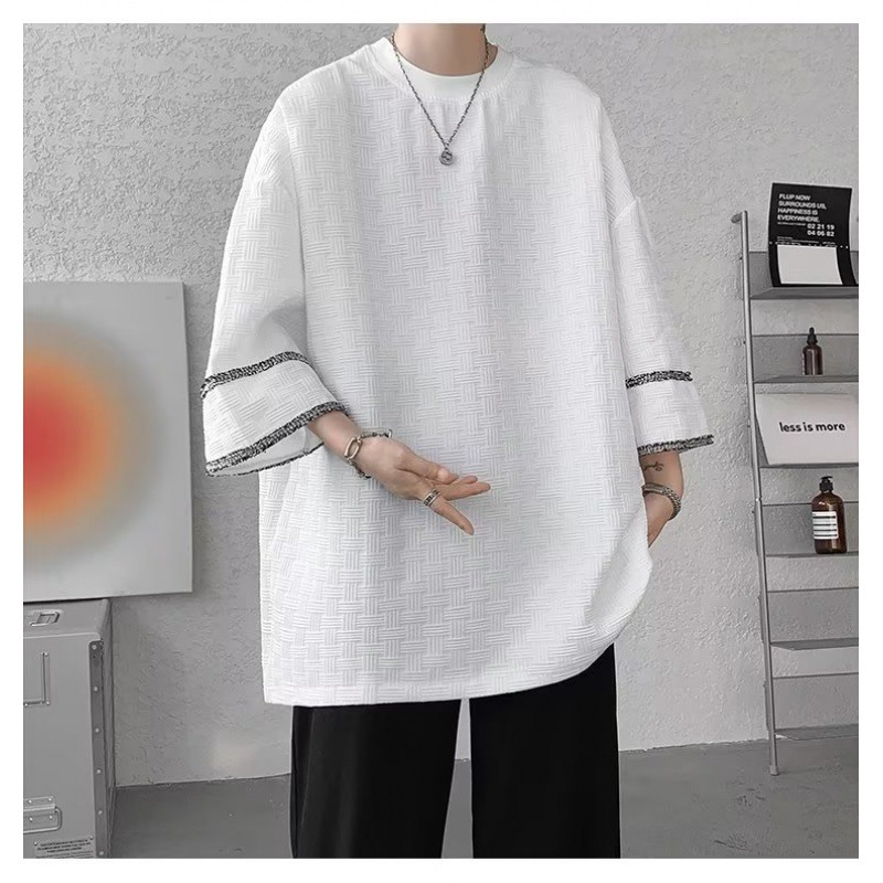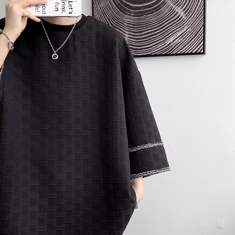 高级感美式七分袖T恤男士设计感小众潮牌ins夏季冰丝痞帅短袖体恤