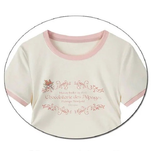 重磅纯棉港风五分袖女韩版卡通涂鸦花朵印花短袖T恤直播小红书款