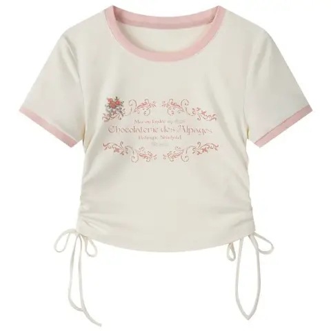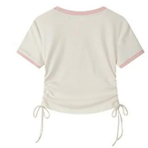 螺纹夏季露肚脐圆领正肩短袖t恤女美式甜辣小众设计感短款显瘦