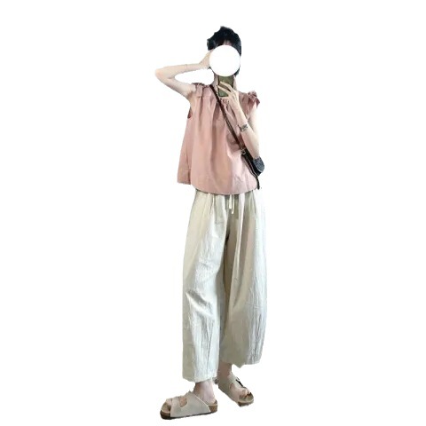 日系可爱风休闲夏季套装女粉色上衣无袖设计感温柔上衣