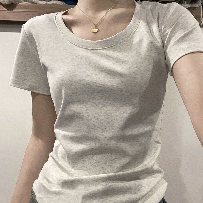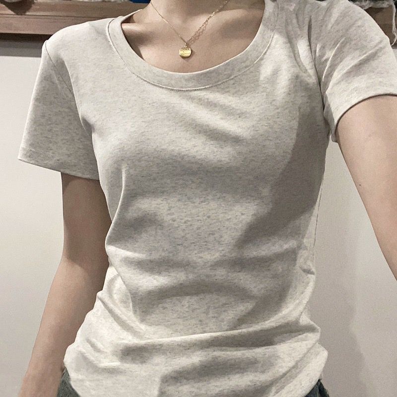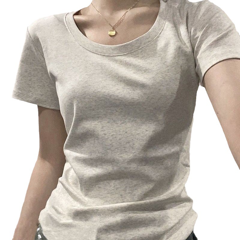 正肩纯全棉上衣t恤女短袖百搭基础款修身显瘦甜辣风洋气打底衫潮