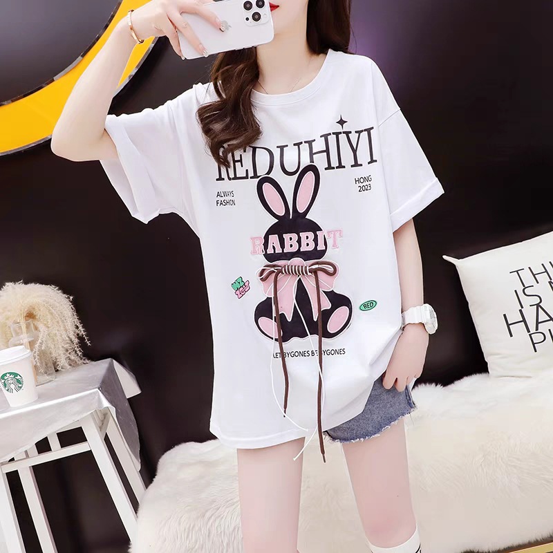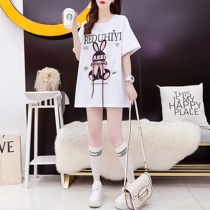 设计感小众港风短袖t恤女夏季胖mm大码中长款别致独特上衣潮