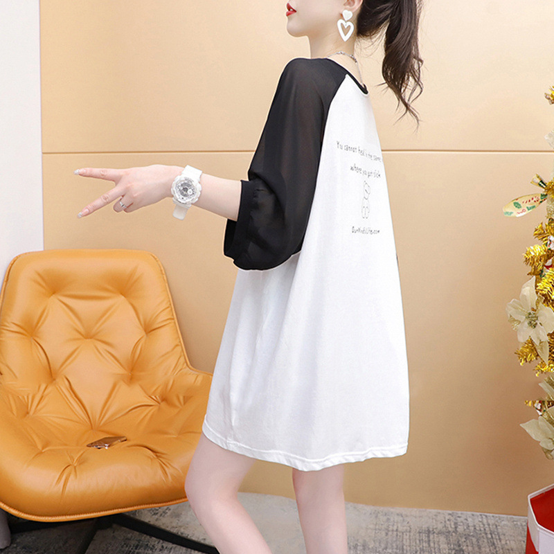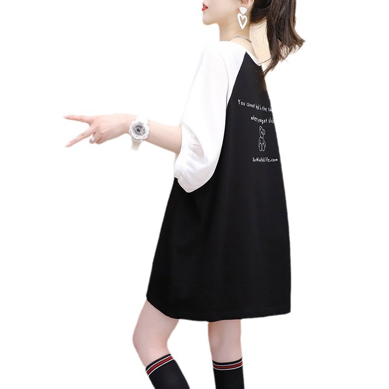 纯棉中长款撞色短袖T恤女夏季新款遮肉洋气减龄大码上衣