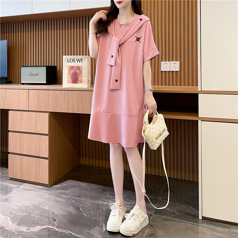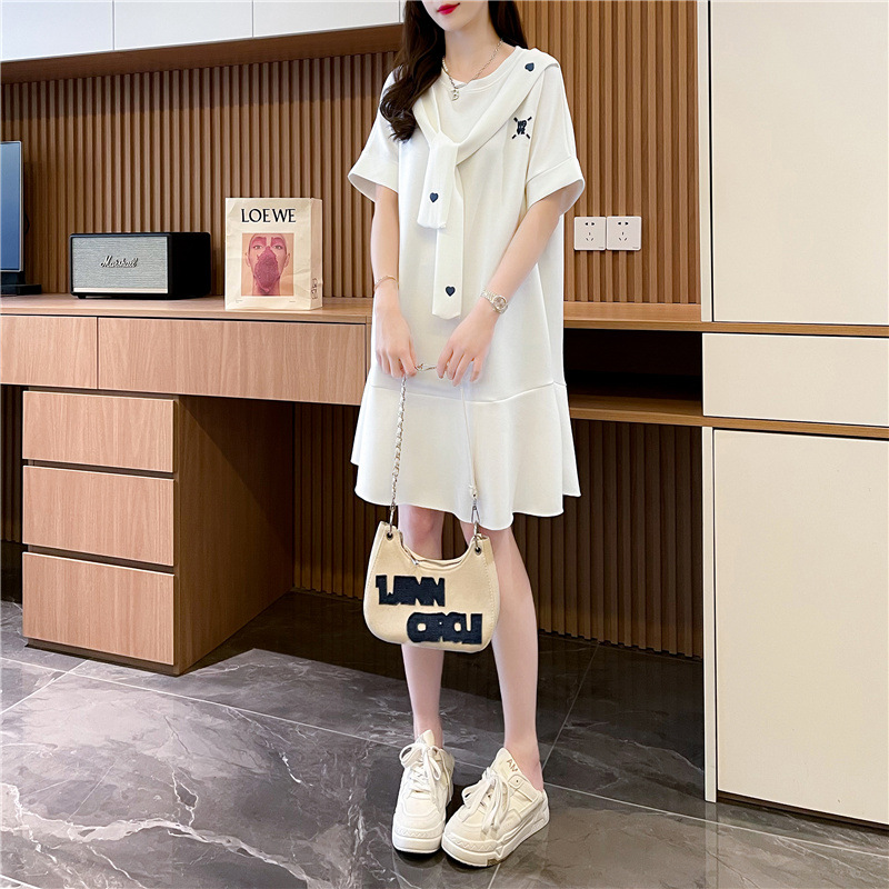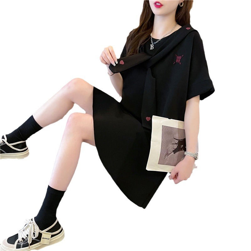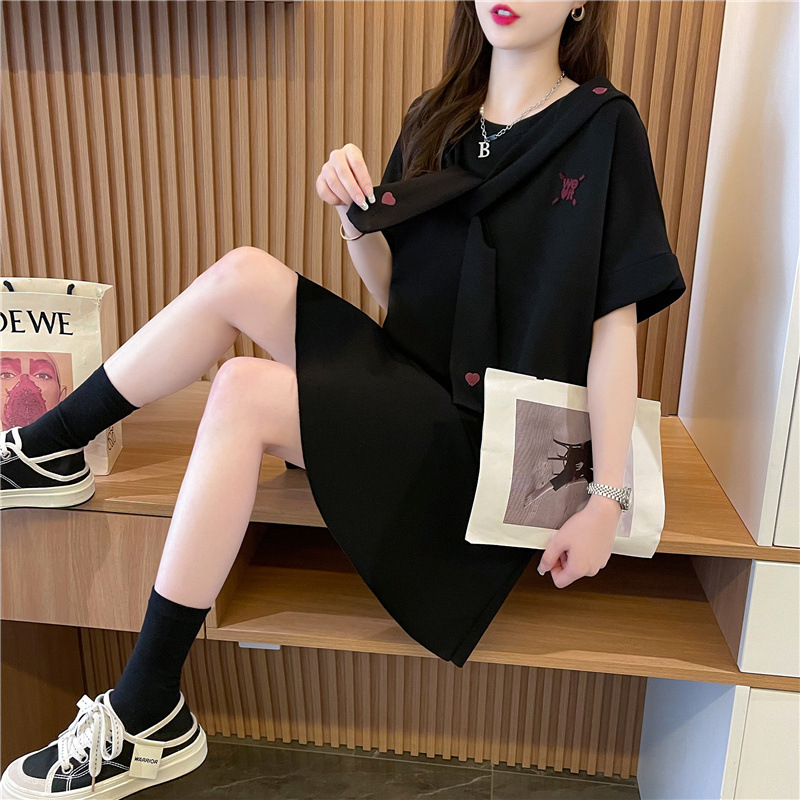 中长款设计感短袖T恤裙女新款夏季韩版系带宽松体恤裙