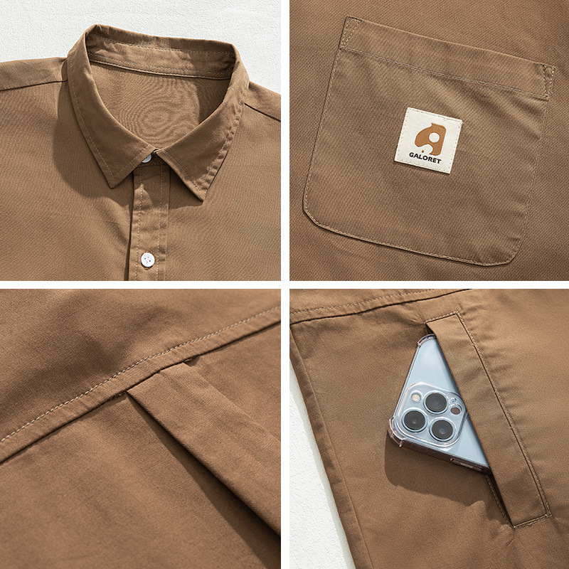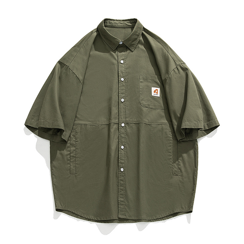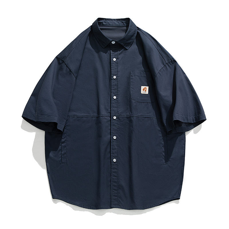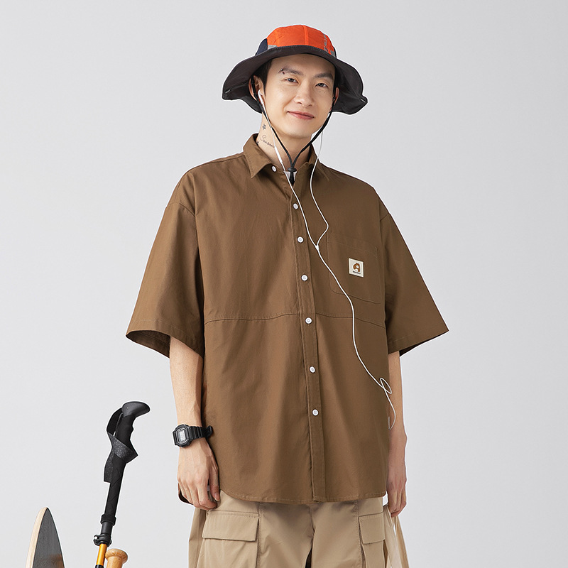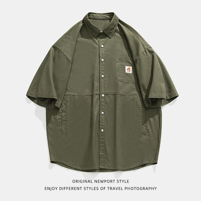 韩路日系男装 日系工装短袖衬衫男春夏新款宽松全棉情侣口袋衬衣