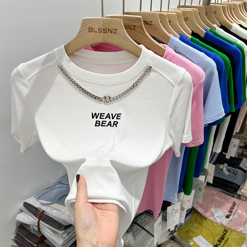白色短袖t恤女夏季新款鱼骨别致设计感小众上衣半袖体恤潮