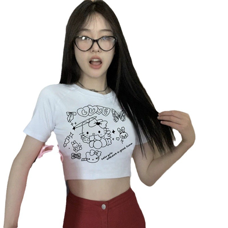 年夏季新款女装时尚宝贝可爱印花正肩修身显瘦T恤女潮流