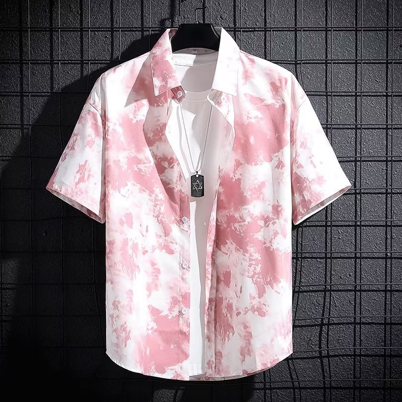 新款短袖衬衫男士冰丝透气夏季韩版潮流高端印花衬衣半袖寸衫