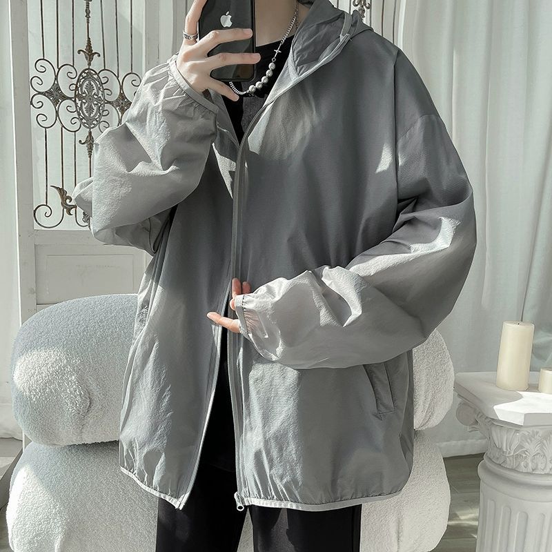 防晒衣外套男夏季美式高街青少年户外轻薄大码透气连帽防晒服夹克
