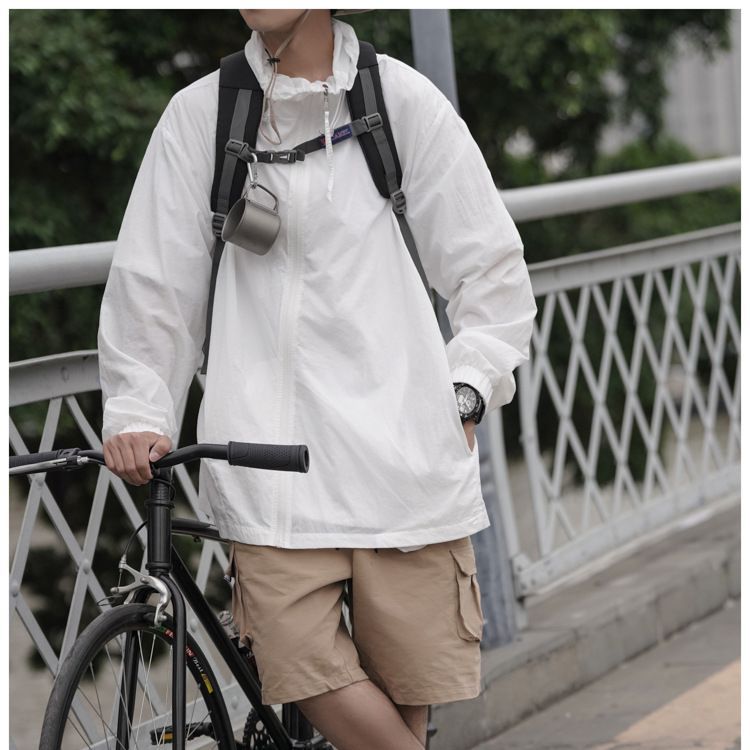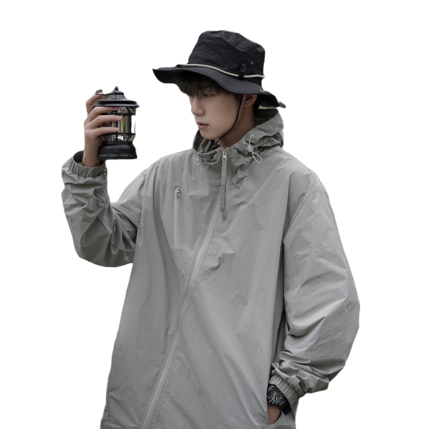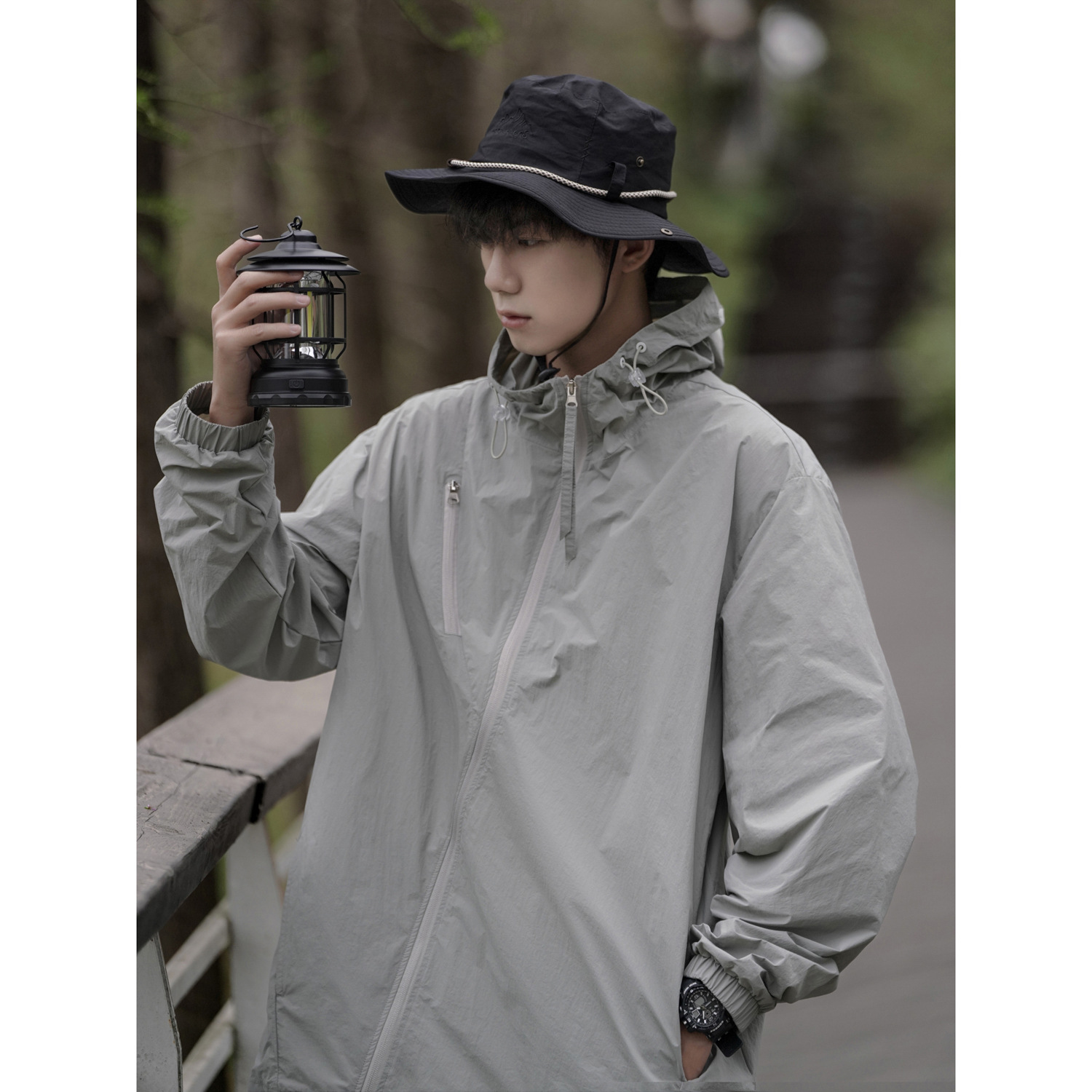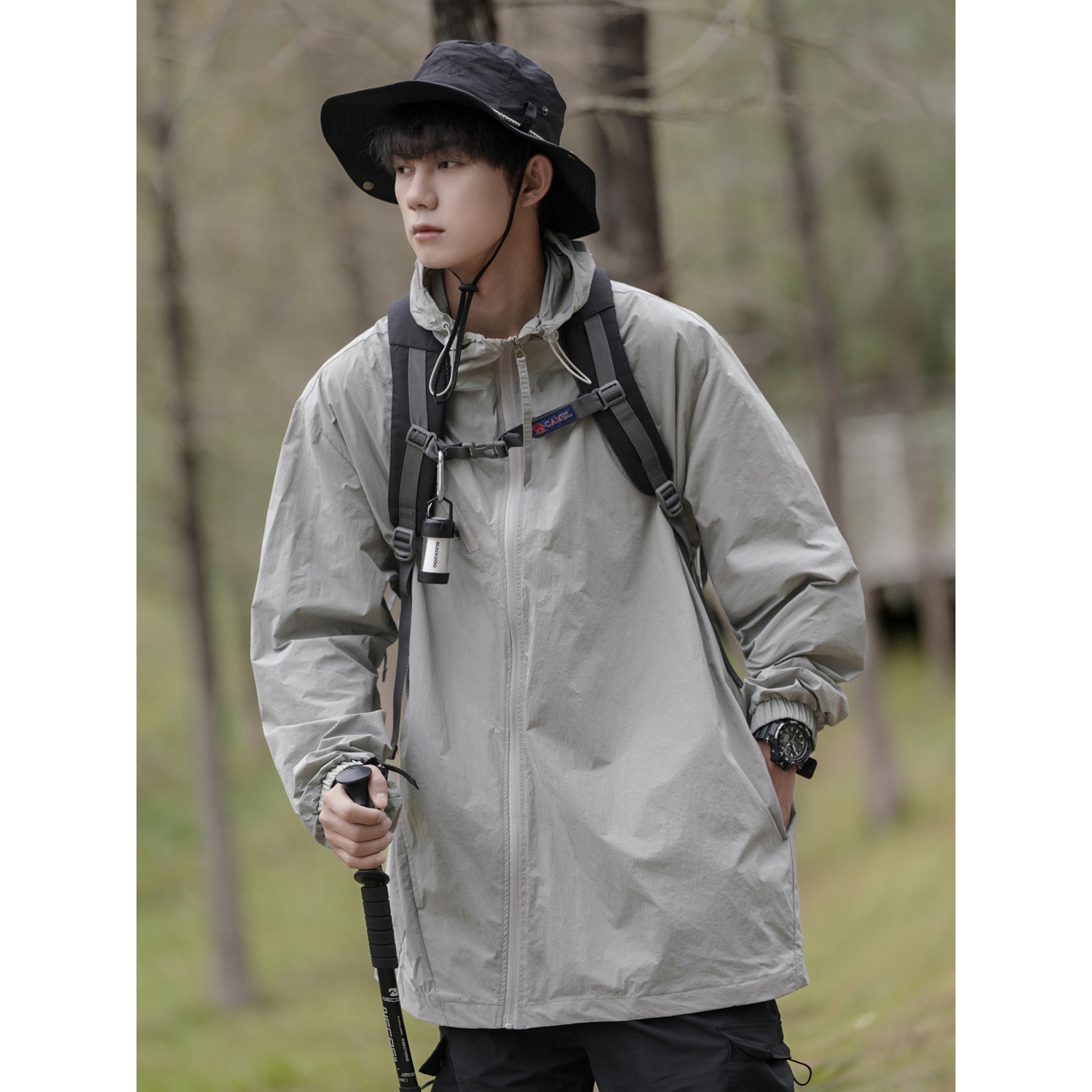 美式机能连帽防晒衣男夏季薄款高街潮牌防晒服痞帅户外冲锋衣外套