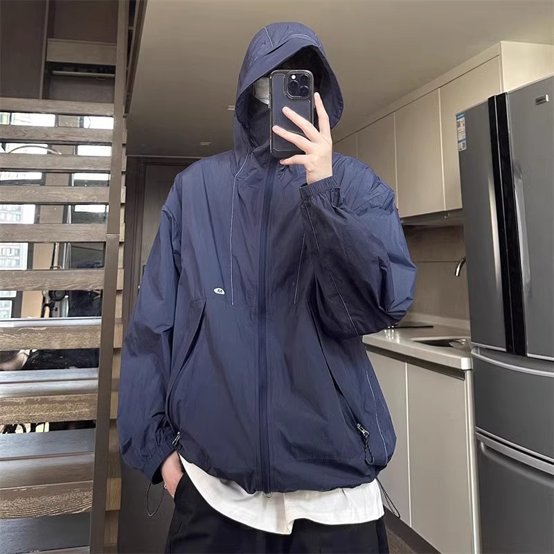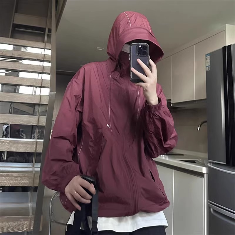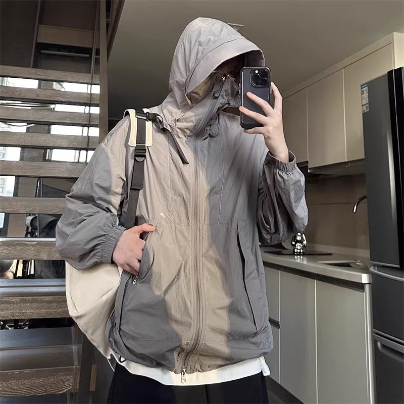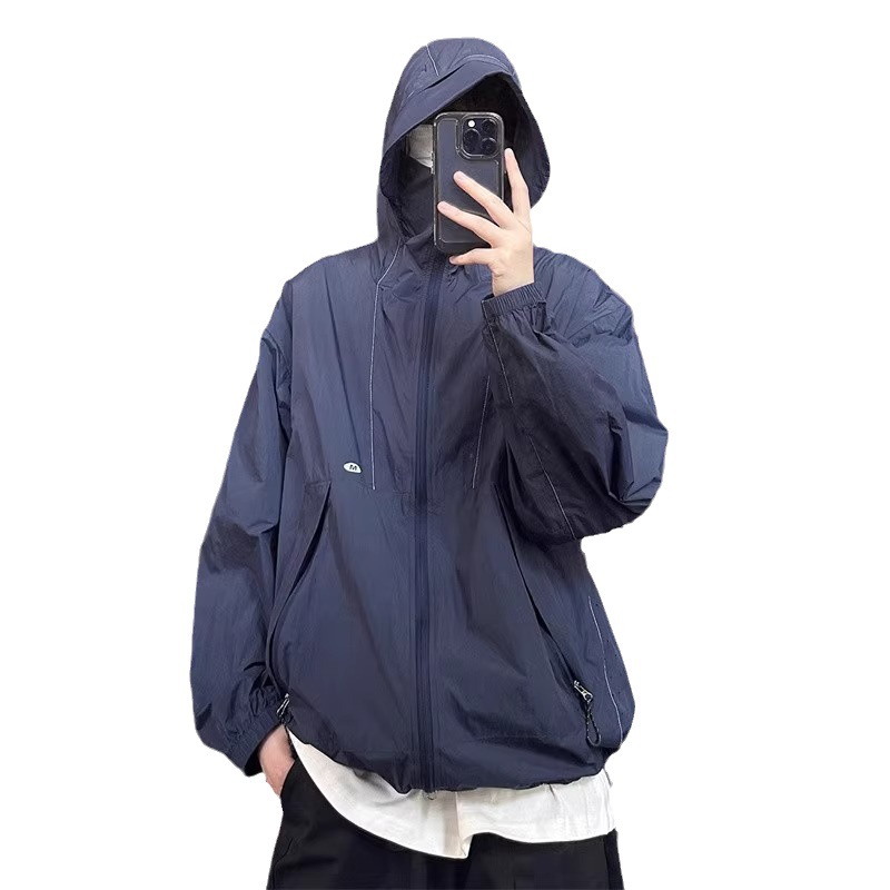 夏季户外轻薄连帽工装防晒衣男女时尚设计感百搭个性宽松休闲上衣
