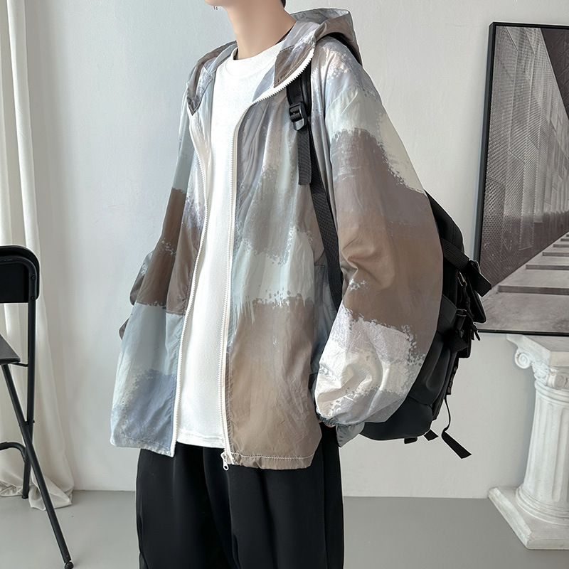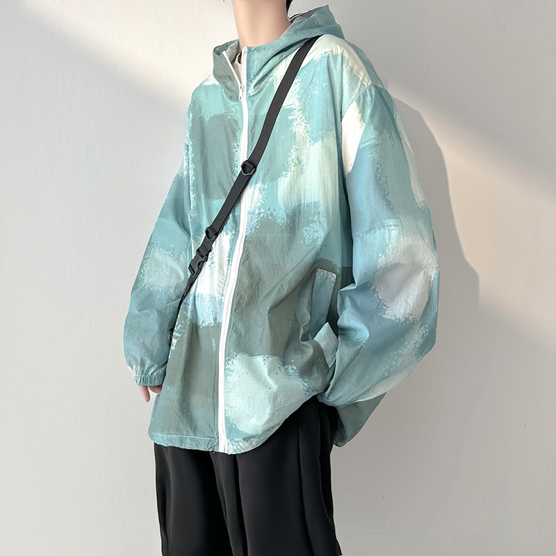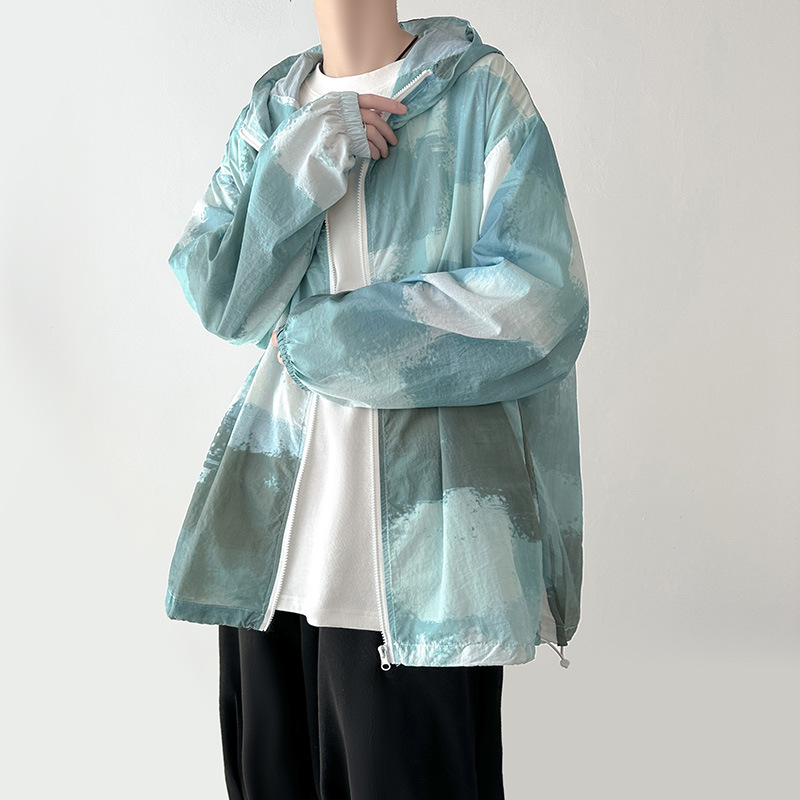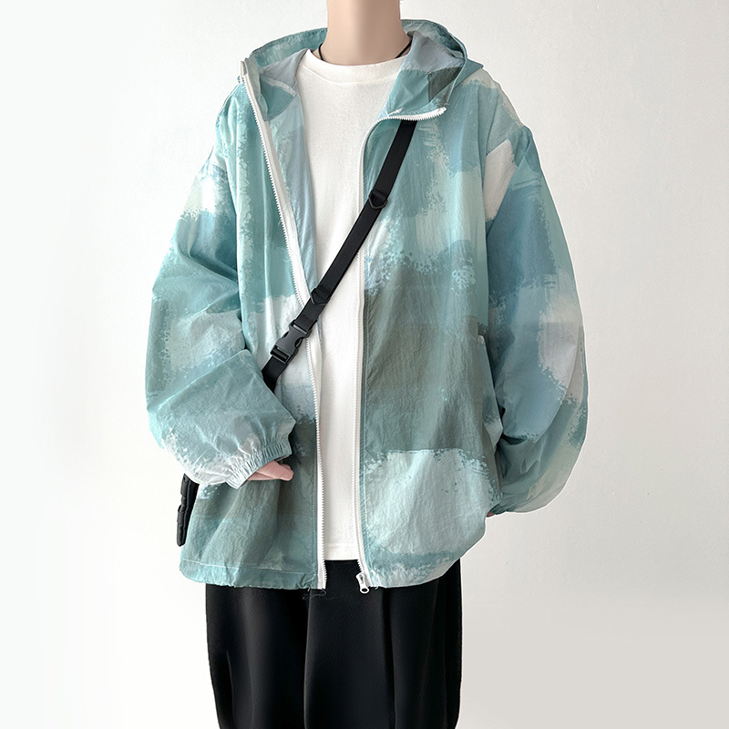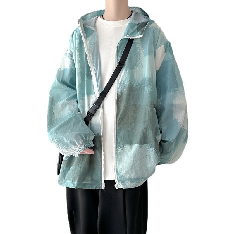扎染防晒服男夏季薄款潮牌百搭连帽夹克青少年痞帅户外防晒衣外套