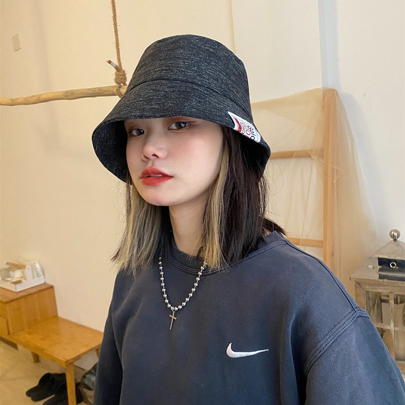水洗棉帽子女生日系宽檐渔夫帽字母贴布秋季潮牌素颜遮脸百搭盆帽
