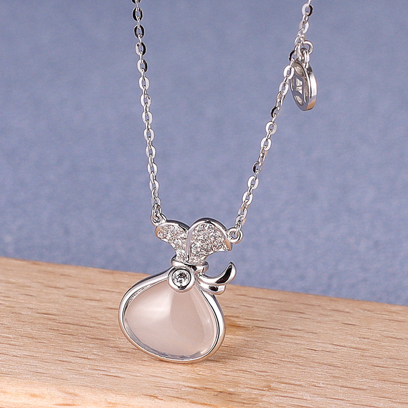 新款s925纯银项链女 小众设计感项坠玉髓气质钱袋吊坠福禄锁骨链