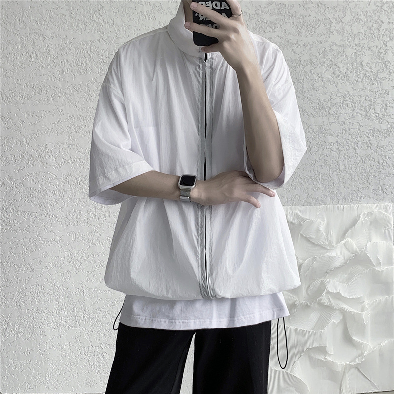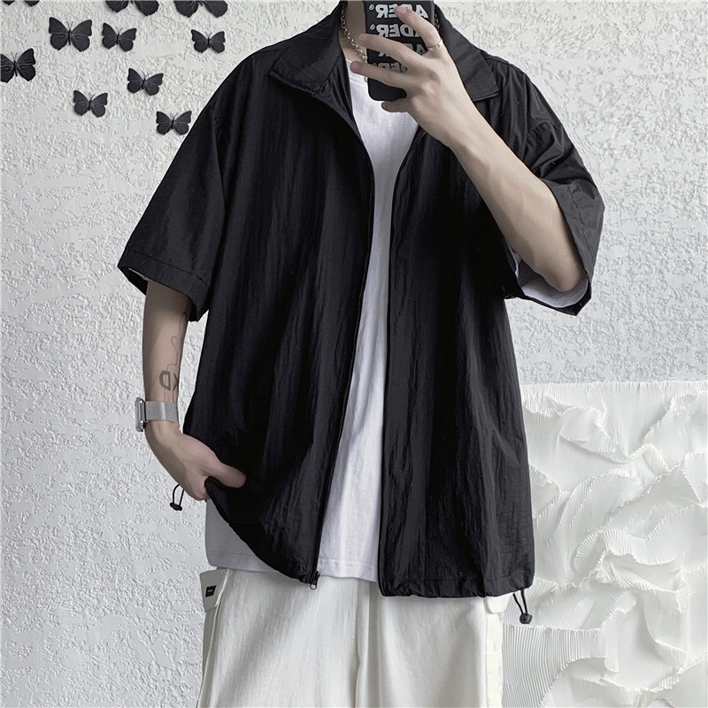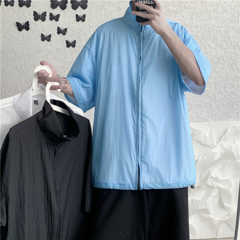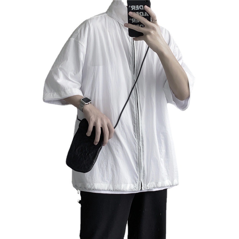 夏季薄款防晒衣男ins潮牌宽松透气冰丝半袖外套港风学生休闲上衣