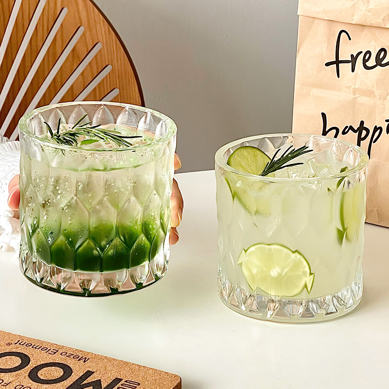 复古轻奢菱格大容量玻璃水杯子冰球杯威士忌酒杯饮料饮品杯高级感