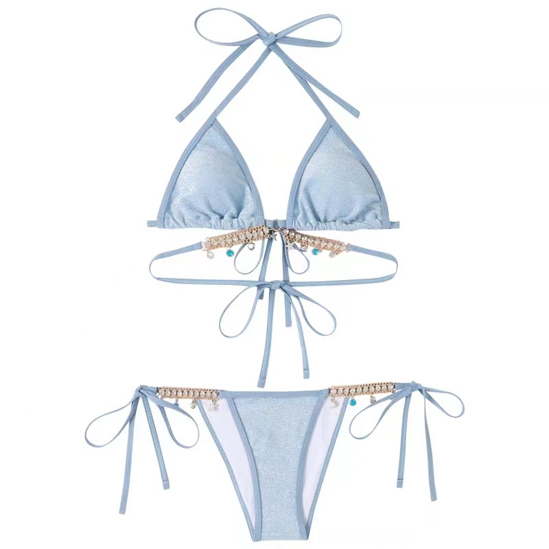 泳衣女新款人鱼钻链欧美比基尼性感聚拢沙滩度假三点式纯欲风
