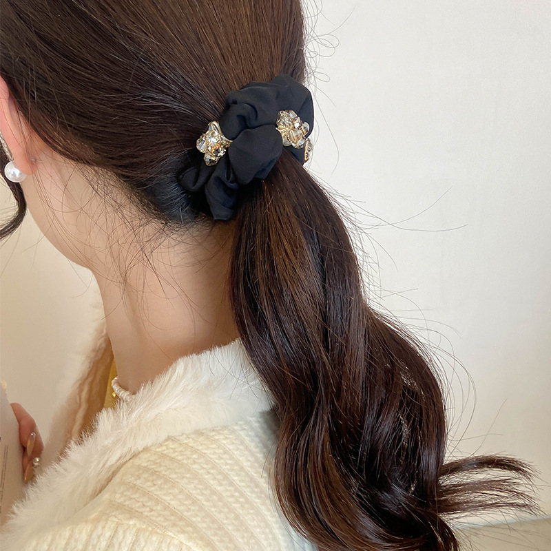 高级感K9水晶大肠发圈气质复古黑色发绳新款高弹力扎头发皮筋