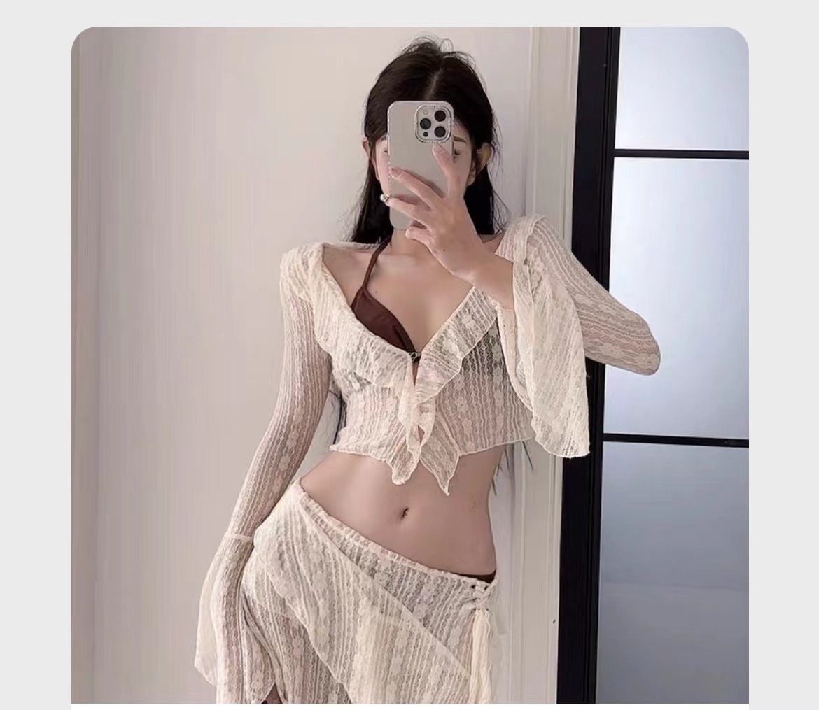 泳衣女辣妹风性感度假温泉网红款纯欲少女分体四件套沙滩海边泳装