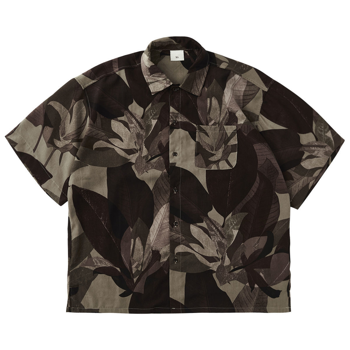 港风复古花衬衫男夏季年新款设计感小众宽松痞帅衬衣短袖上衣