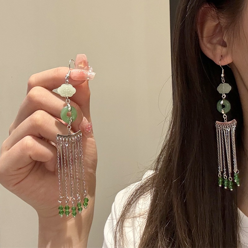 新中式汉服流苏耳环中国风古装天然玉石步摇仙气耳钉小众设计耳挂