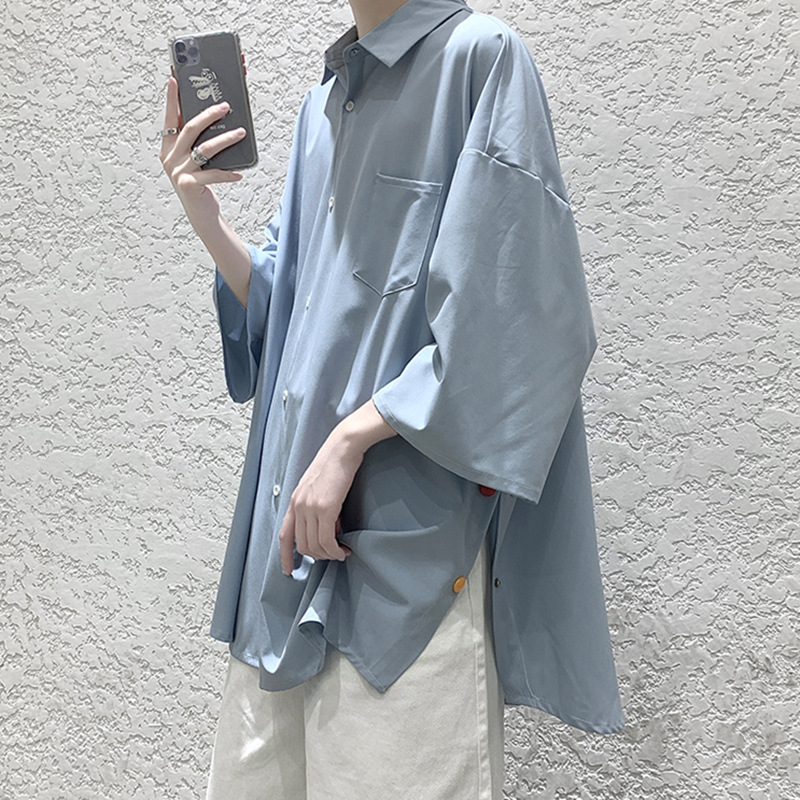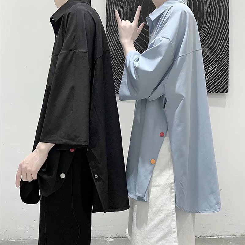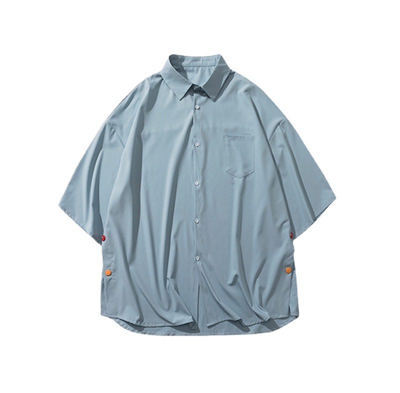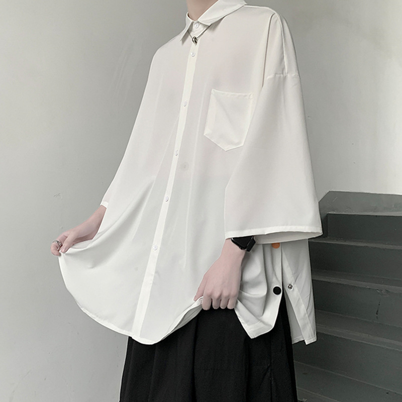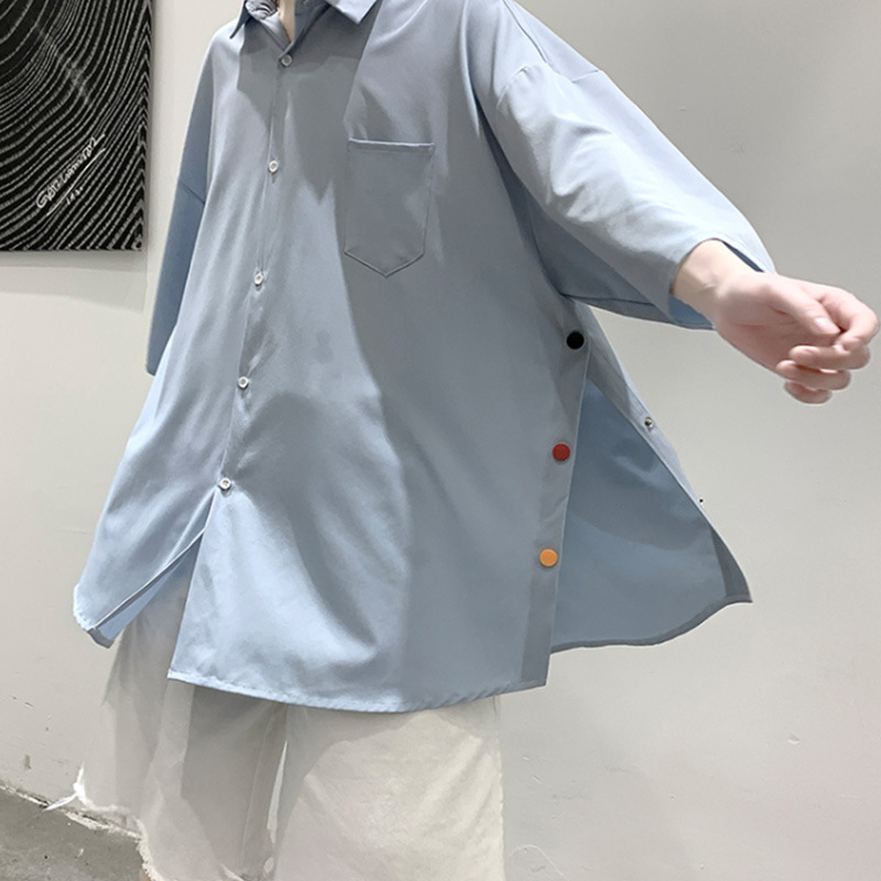 痞帅开叉dk制服男士夏季潮牌短袖衬衫港风日系宽松休闲衬衣设计感