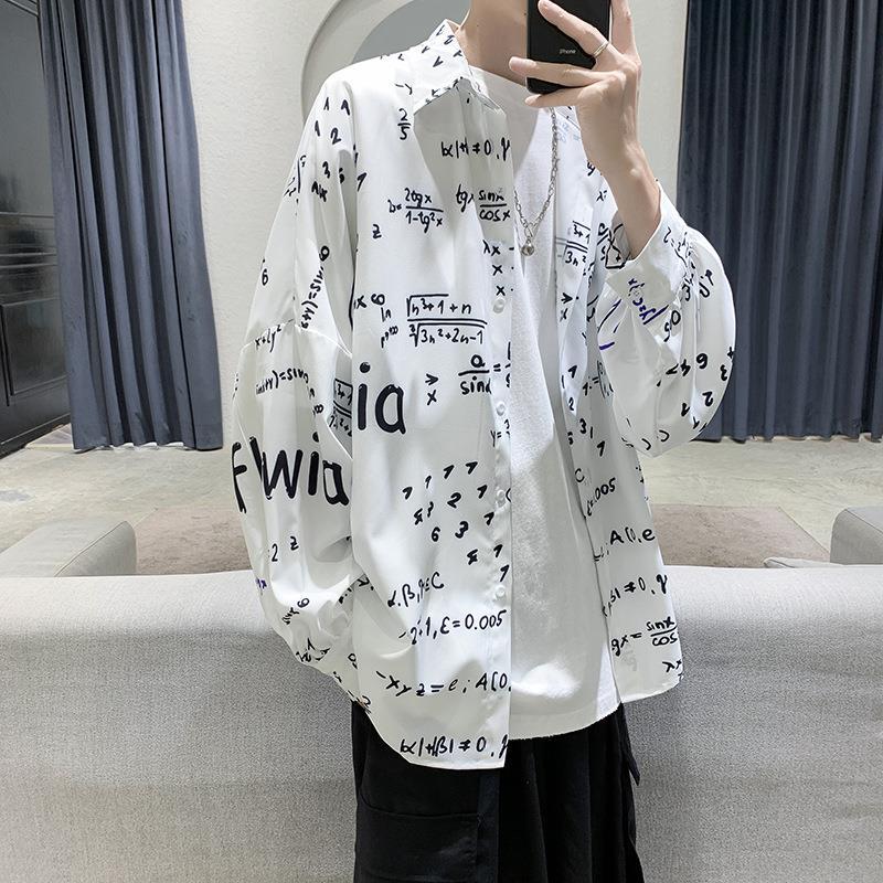 禁欲系男装港风印花高级感衬衫男日系风格穿搭设计感痞帅长袖衬衣