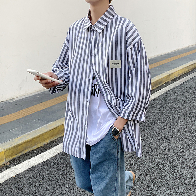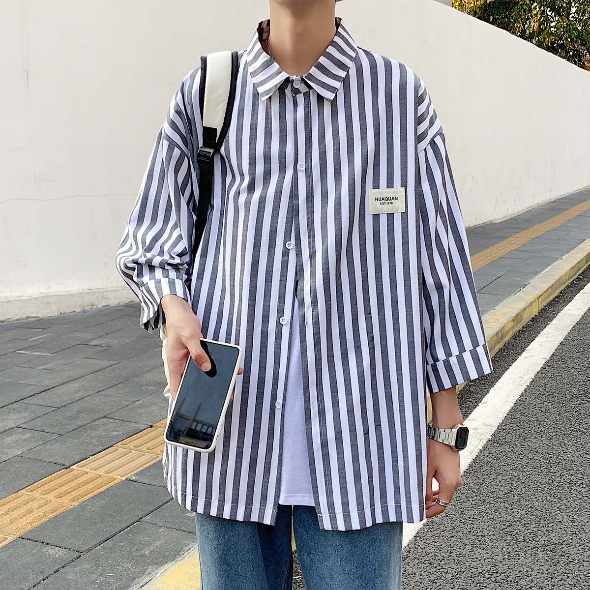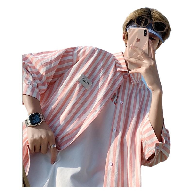 ins男友风设计感小众粉色条纹衬衫男cityboy法式高级感衬衣外套潮
