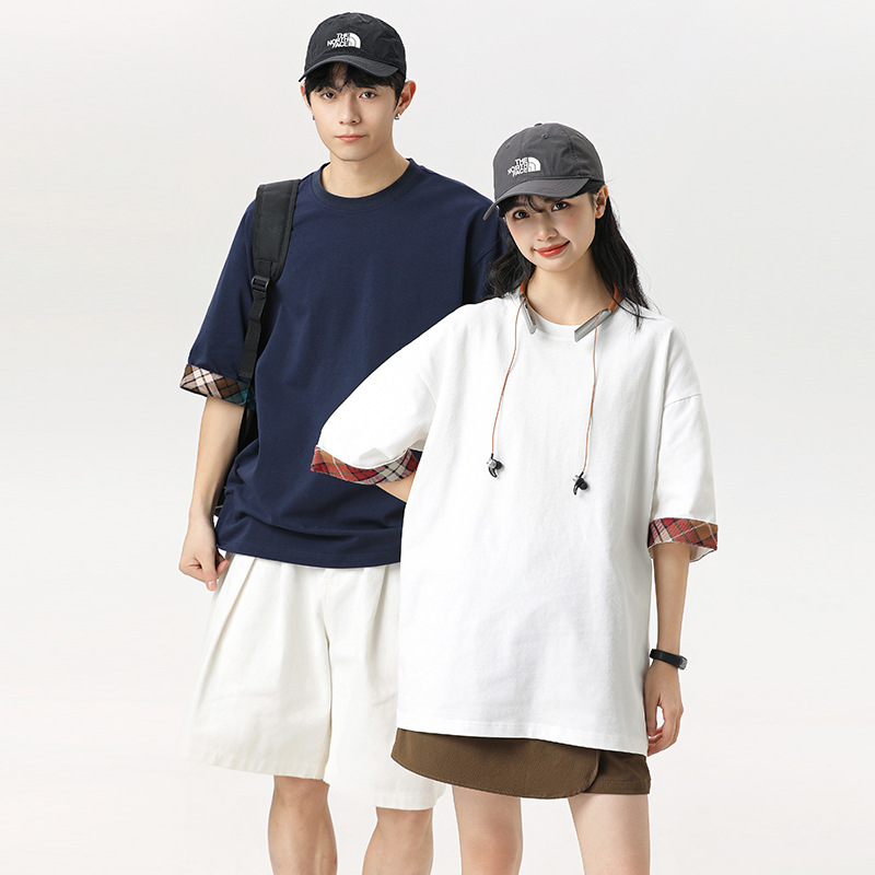 2025新款男士圆领T恤美式复古撞色拼接凉感速干休闲宽松短袖T恤男