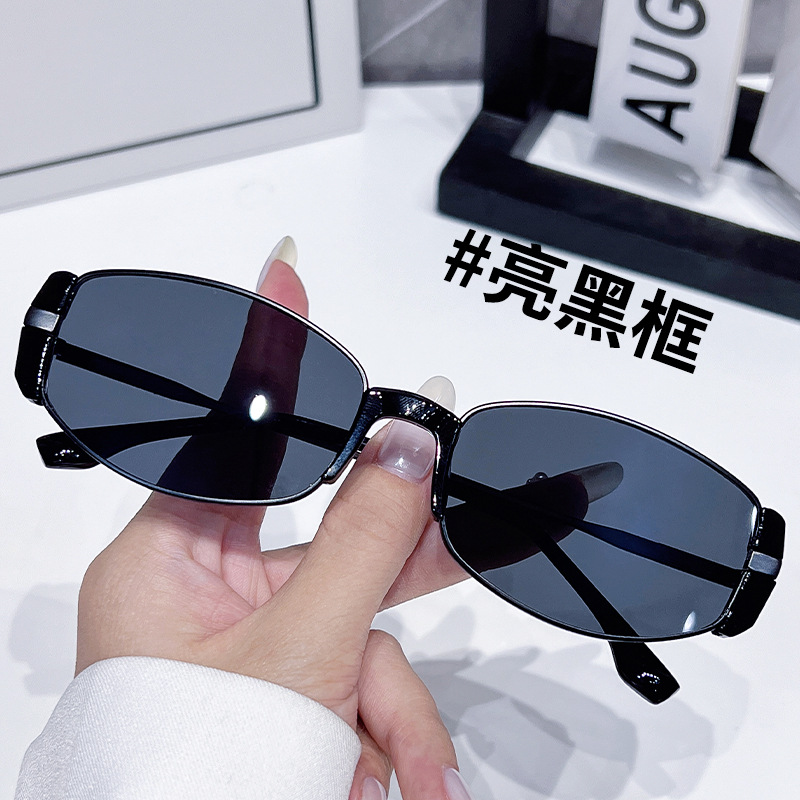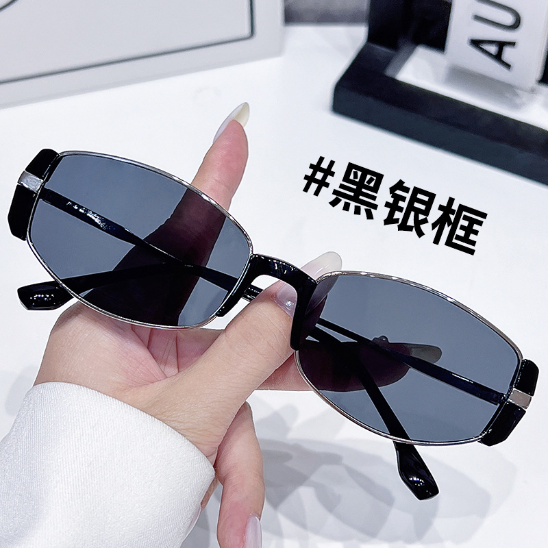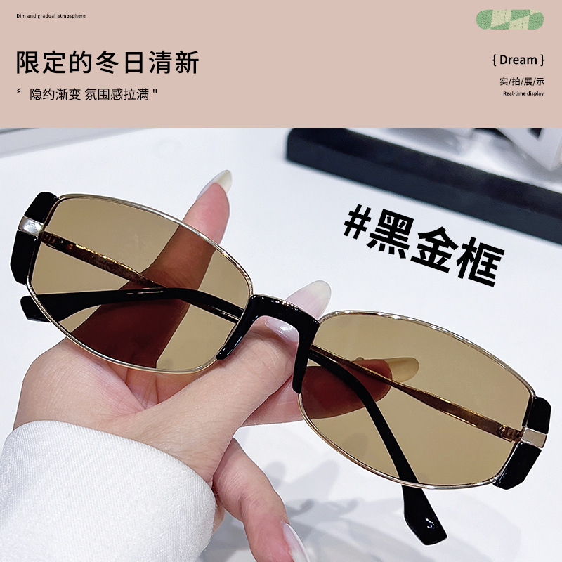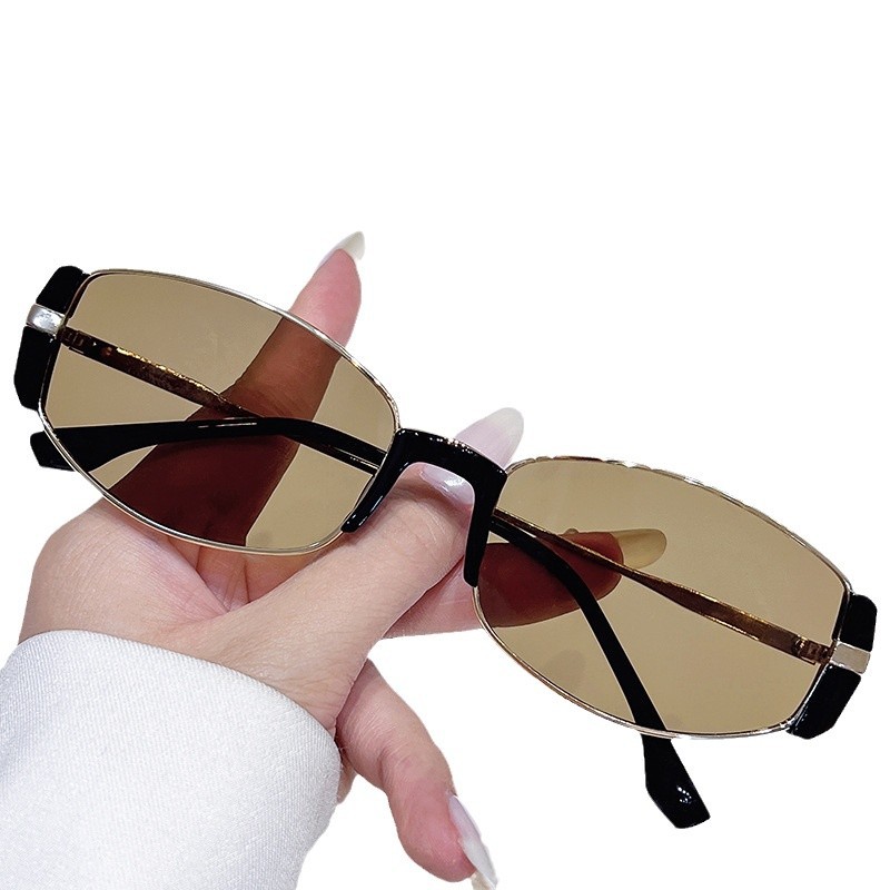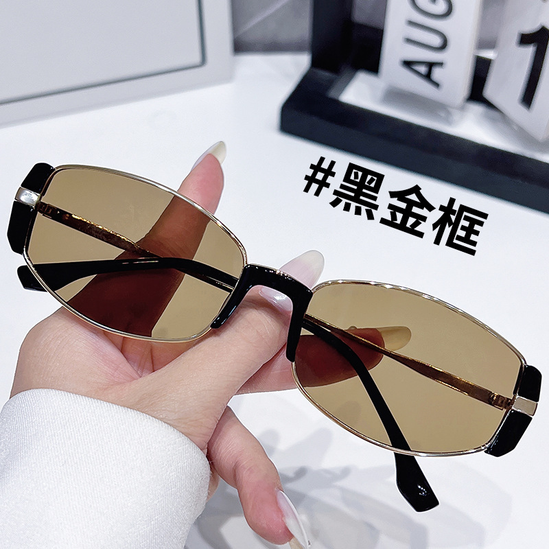 新个性墨镜女高级感复古茶色金属窄框圆脸猫眼太阳镜户外防紫外线