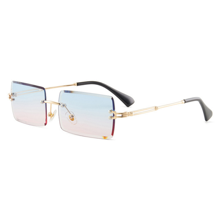 跨境爆款无框切边太阳镜新款欧美时尚ins网红方形小框渐变色墨镜