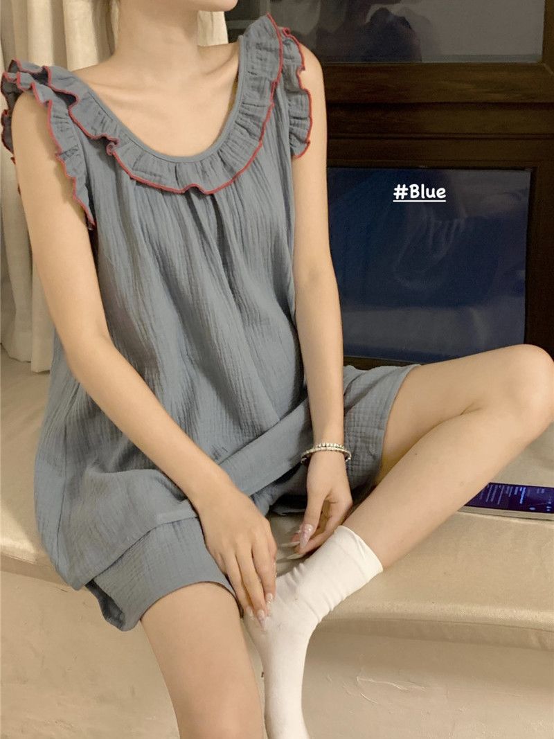 新款睡衣女夏季小个子简约ins吊带薄款荷叶边家居服两件套