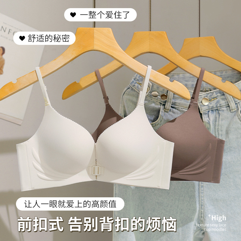 无痕小胸聚拢前扣美背内衣女无钢圈舒适收副乳防下垂透气中厚文胸