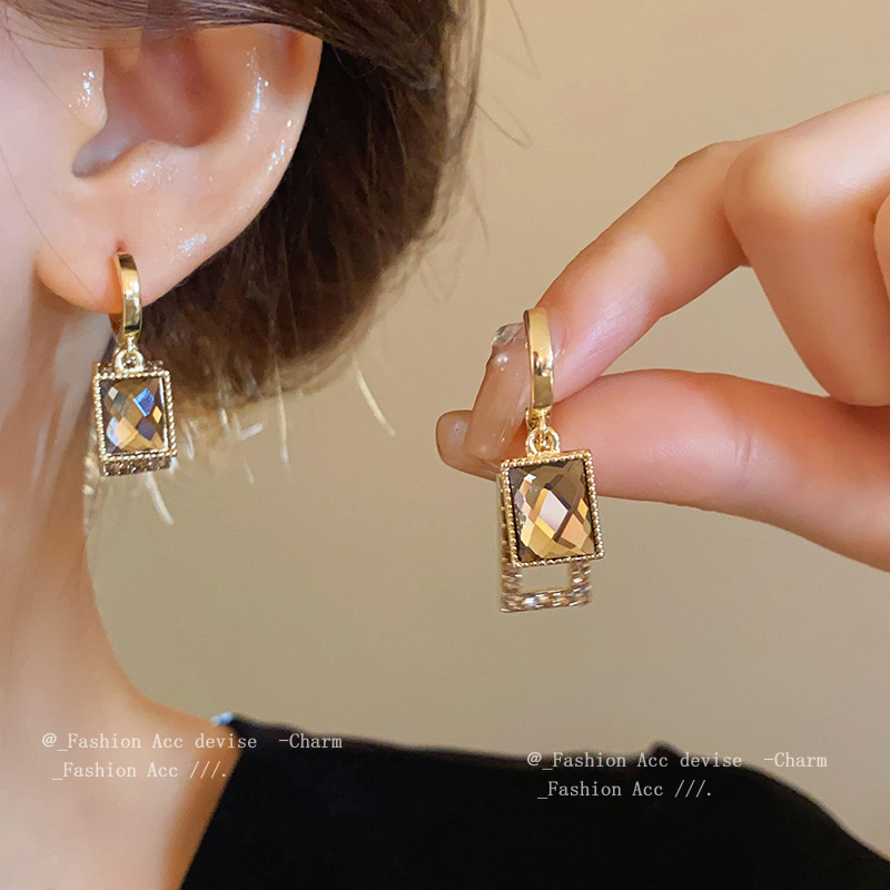 韩系ins方形镶钻耳扣小众复古设计感耳环气质时尚高级感耳饰