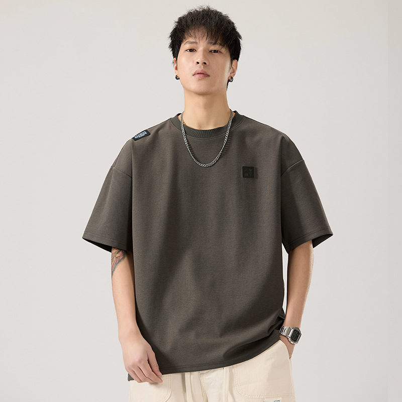 夏季新款2025凉感短袖t恤男高端潮牌圆领半袖宽松五分袖体恤上衣