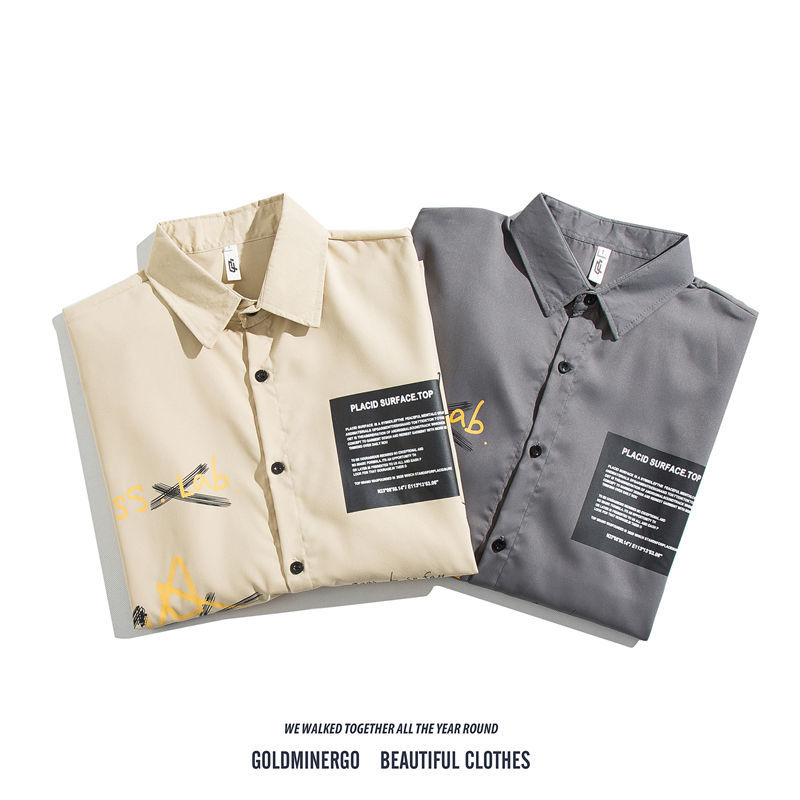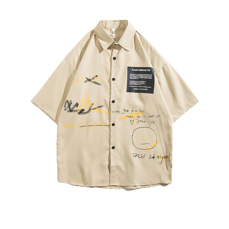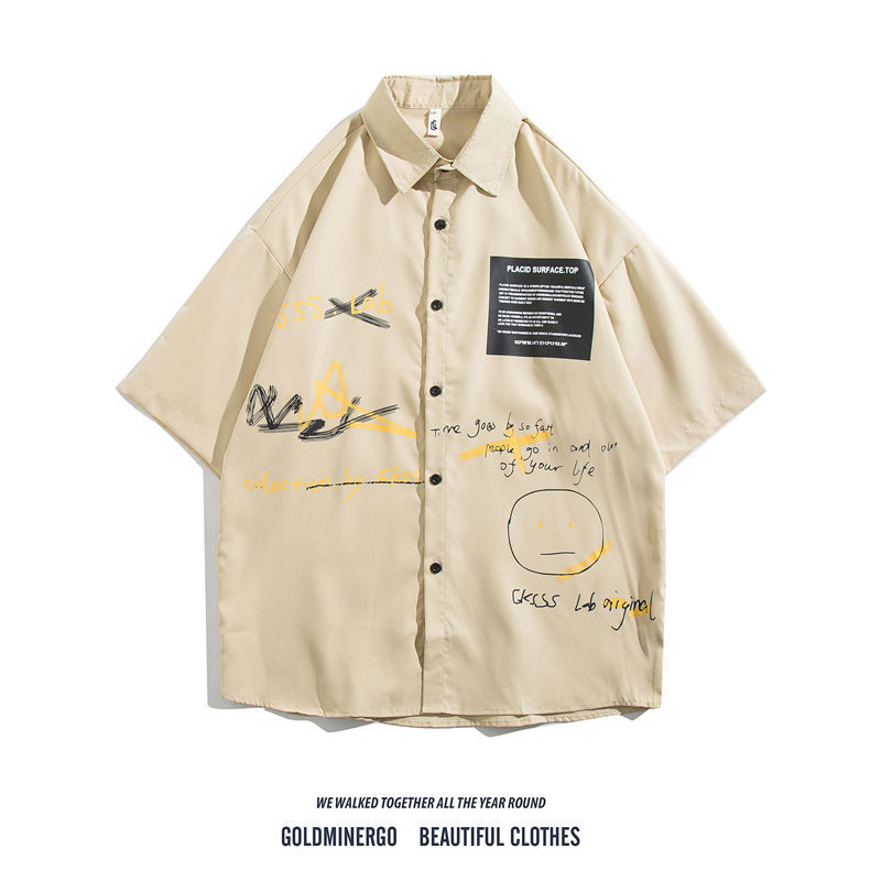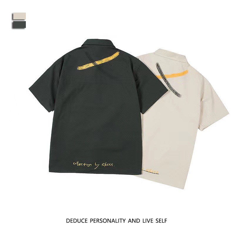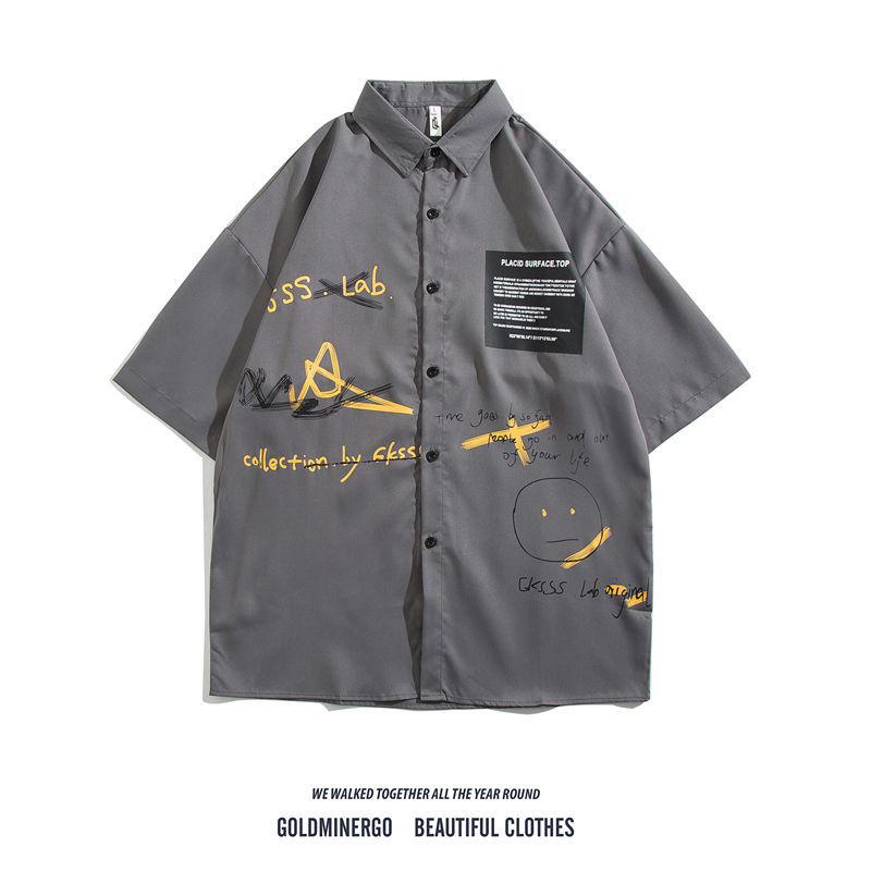 涂鸦短袖衬衫男夏季设计感小众上衣ins潮流衬衣大码港风日系外套