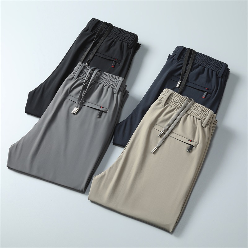 高端品质冰丝弹力休闲裤男士中青年夏季薄款冰爽速干直筒商务西裤