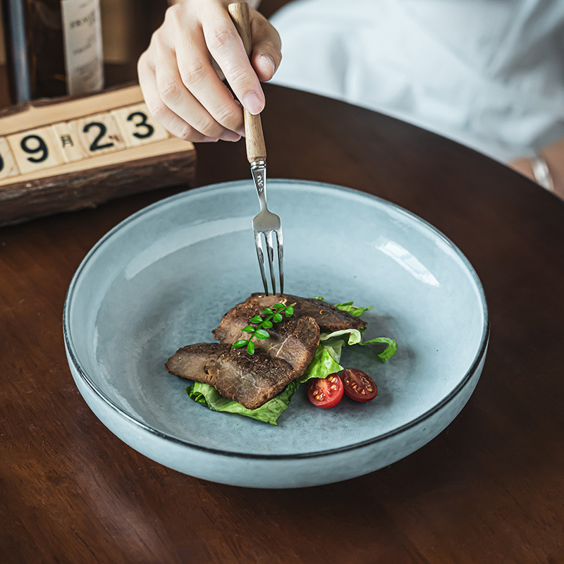 日式复古窑变陶瓷圆形大碗家用特色实用餐具西餐意面碗水果沙拉碗