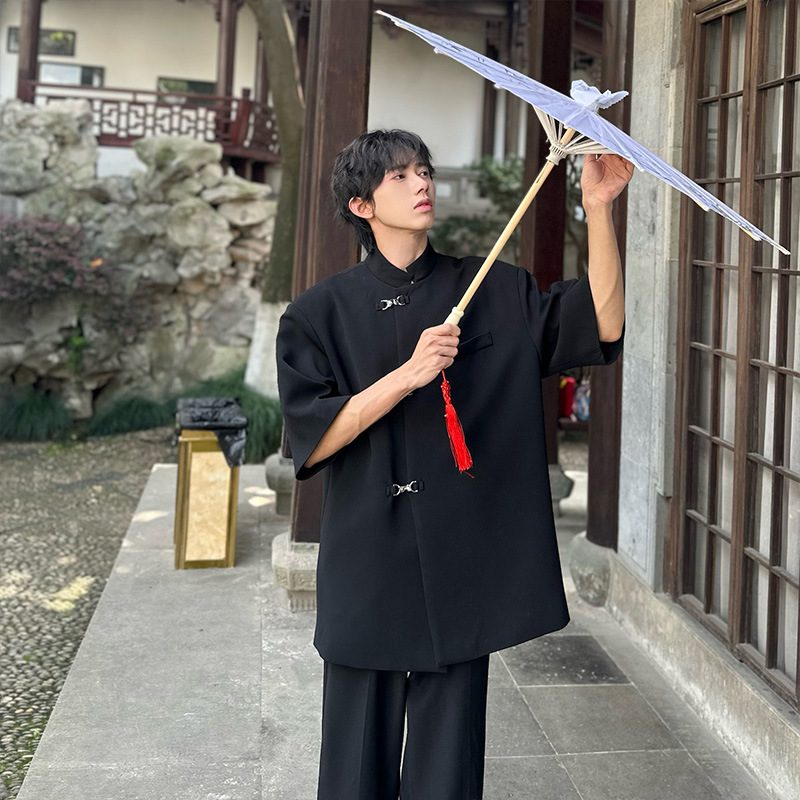国风衬衫短袖男款夏季新款设计感小众宽松休闲衬衣潮牌新中式外套