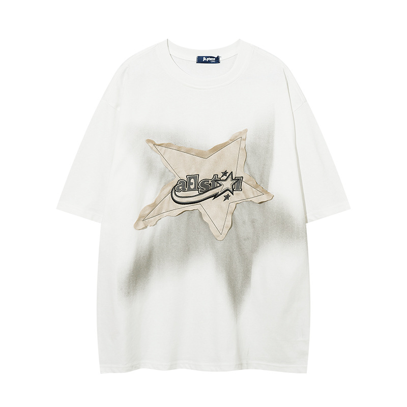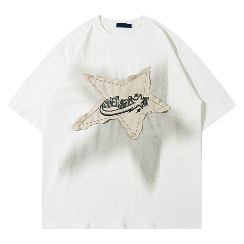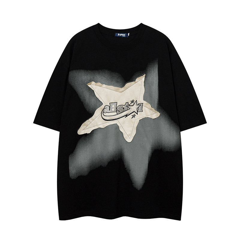 YPRS男装潮牌设计感美式复古星星贴布宽松BF风情侣潮牌ins短袖T恤